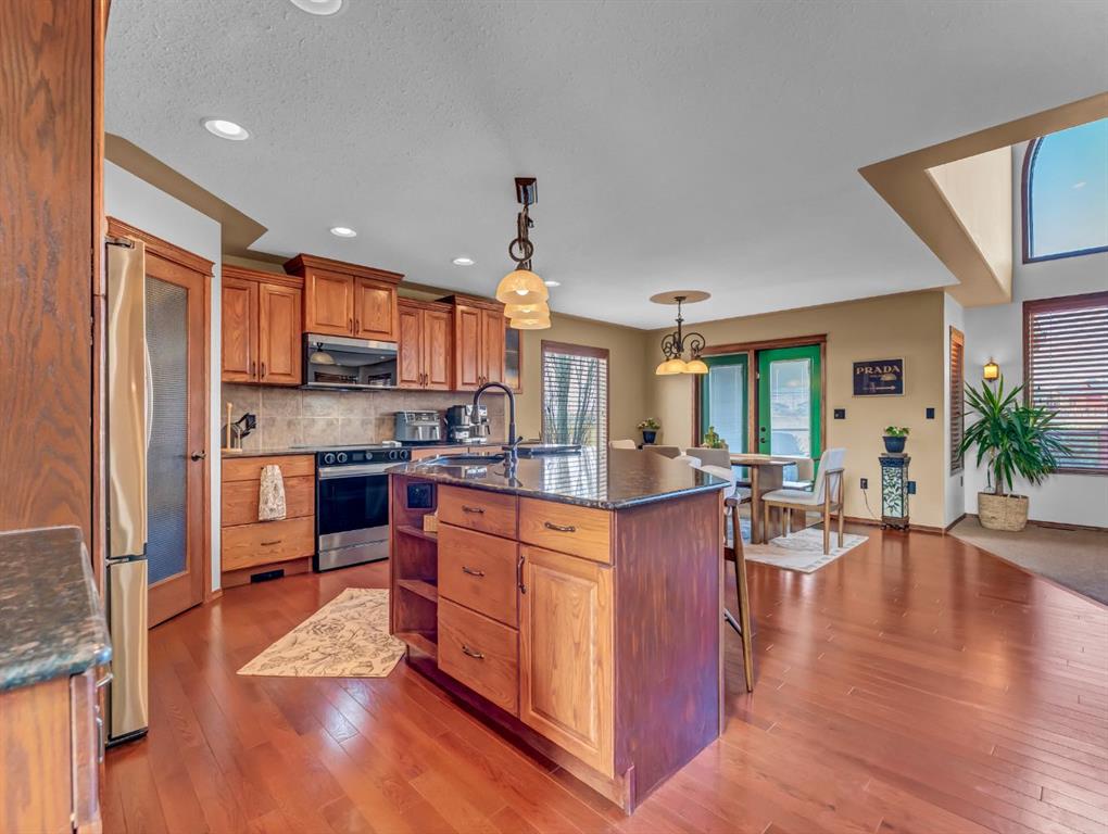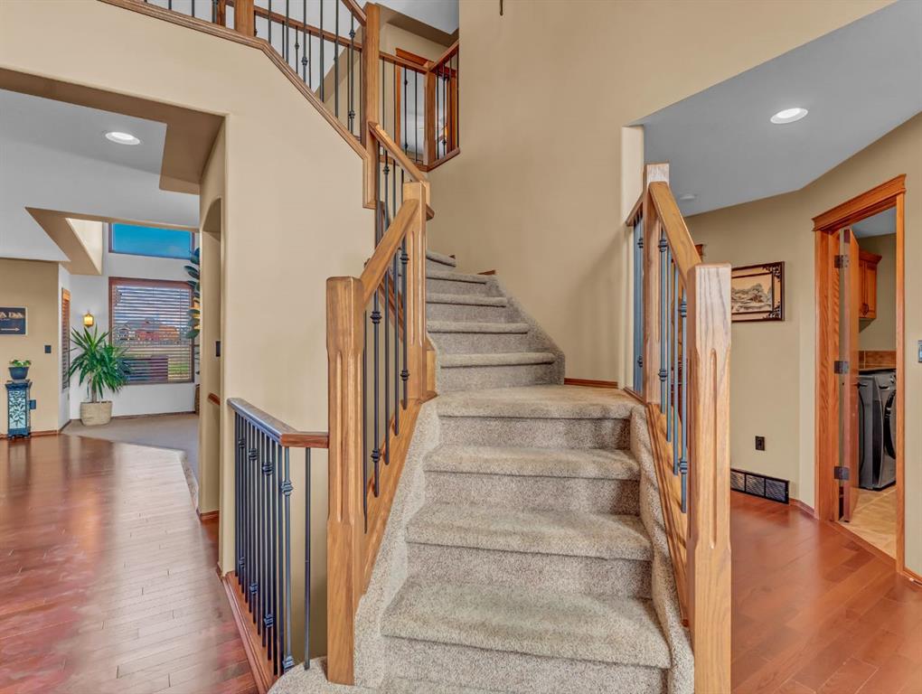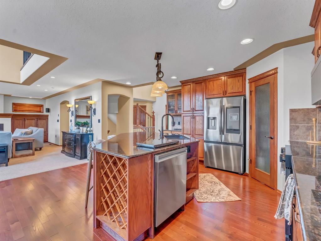 Welcome to 278 Desert Blume Drive - an exceptional two-storey home offering 2495 sq ft of refined living space in one of Medicine Hat's most sought-after golf course communities. Perfectly positioned backing onto the 11th green, this property delivers a rare blend of luxury, comfort, and stunning views. Step inside to discover a bright and inviting layout highlighted by large windows that flood the home with natural daylight. The spacious main floor is designed for both everyday living and entertaining, including a functional kitchen with granite countertops and corner pantry, generous dining area, large livingroom with gas fireplace, and a handy front office that is perfect for the home-based business. The upper level features three generously sized bedrooms, including a well-appointed primary retreat with gorgeous 5pc ensuite and recently renovated walk-thru closet. The fully finished basement is an entertainer's dream - complete with a pool table and stylish wet bar, large family room with gas fireplace, and an additional bedroom & 4pc bathroom. Outside, the beautifully landscaped yard creates your own private oasis. Enjoy evenings on the deck with friends, take a dip in the hot tub (complete with electric canopy), or take in the peaceful golf course views. The dedicated dog run adds convenience for pet owners, while the triple heated garage provides ample space for vehicles, storage, and hobbies. Other extras in this home include: Newer high-end Samsung wifi compatible appliances, Smart wifi lighting in kitchen, custom Hunter Douglas wood blinds, wifi-compatible underground sprinklers, 3-zone heating & cooling, central vacuum system, ethernet connectivity in bedrooms/office/dining area, new hot water tank, outdoor fountain, and much more. Many other furnishings in the home are also negotiable. This is a rare opportunity to own a premium home in a prime location - offering space, luxury, and lifestyle all in one. Don't miss the chance to make this incredible property your next home! NOTE: The front steps will be re-surfaced, the lava rock in the front will be topped up, and the backyard fountain will be serviced, prior to possession date as soon as weather allows.