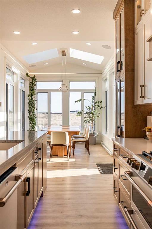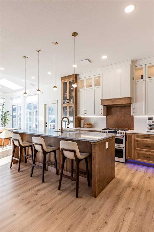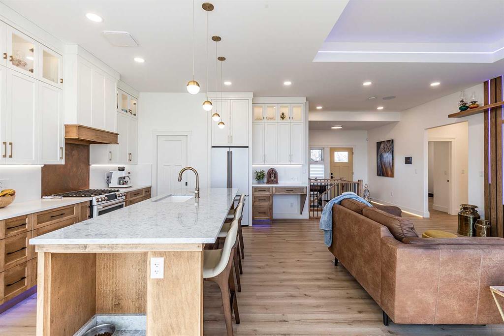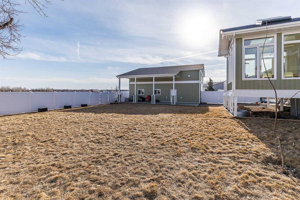 Welcome to this stunning 2022-built bungalow in the heart of Dunmore, where modern luxury meets small-town charm. Offering 1,541 sqft above grade plus a fully developed basement, this 2+2 bedroom home plus fitness room was thoughtfully designed with comfort, function, and style in mind. From the moment you arrive, the curb appeal is undeniable: beautiful exterior finishes, a triple attached garage (36 x 29), expansive driveway, RV parking with plug, and a 30x40 shop with in-floor heat, oversized door, and future hanging shelving support. Step inside the house and you’re greeted by a bright, open, and welcoming interior with tall ceilings and durable vinyl plank flooring throughout. The living room is a true showpiece, featuring a tray ceiling with inset lighting, custom built-ins with floating shelves, decorative wood detailing, and a striking wood-burning fireplace that adds warmth and character. Large windows flood the space with natural light. The custom kitchen is equally impressive featuring ceiling-height cabinetry with upper lighting, a contrasting maple island with seating, stunning copper backsplash, and high-end Café appliances including a gas stove. The spacious dining area is surrounded by windows and enhanced by vaulted ceilings and skylights, creating an airy, light-filled atmosphere with direct access to the back deck. A walk-through butler’s pantry provides exceptional storage and prep space, seamlessly connecting to the laundry/mudroom complete with built-in cabinetry and sink. The primary suite offers a peaceful retreat with a walk-in closet and beautiful 3 pc ensuite. A second bedroom and full 4 pc bathroom complete the main floor. Downstairs, the fully developed basement remains bright and spacious with a large rec room, dedicated fitness area, and two additional bedrooms. One bedroom features stunning built-in shelving with under-cabinet lighting — perfect for a plant enthusiast or curated display space. The oversized triple garage is a standout feature, complete with a convenient dog wash station and ample room for vehicles, toys, and hobbies. A gas line for your BBQ and an additional line for a fire table make outdoor entertaining effortless. The yard is expansive, landscaped, and primarily grassed, offering a clean, open feel with endless potential for future customization while remaining fully finished and move-in ready. The covered patio off the shop adds yet another inviting outdoor space. The property is also equipped with 200-amp service, hot tub wiring, two exterior hot water bibs, Gemstone lighting on both the house and shop, and a well that can be used for irrigation. Located in the quiet, family-friendly community of Dunmore, you’ll love the larger lots, peaceful surroundings, and welcoming small-town atmosphere, all just minutes from city conveniences. This is a truly exceptional property offering space, quality craftsmanship, and incredible value.