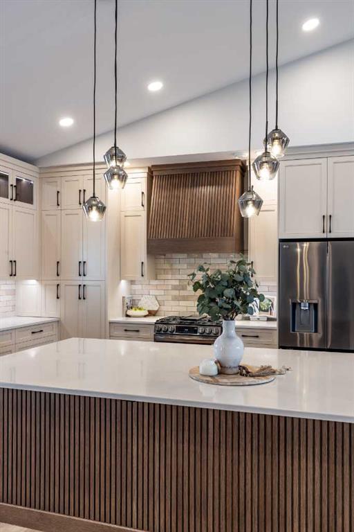 Fridge, BI Dishwasher, Hood Fan, Gas Range, Washer, Dryer, Window coverings (CUSTOM BLINDS), Central A/C, Garage door opener and remote, Garage Heater, Central Vac Roughed in, Custom Vented toilets, HRV, roughed-in underground Sprinkler, gas line to BBQ |
