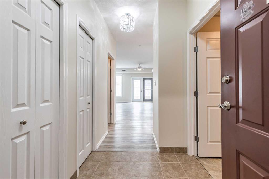 Welcome to a secure, age restricted condo building located in the small town of Redcliff, just on the outskirts of Medicine Hat. You'll love the slower pace of things in Redcliff, but also the easy accessibility to the city and small town amenities that offers everything you'd need within walking distance. Across the street is a meeting hall with events for those looking for company, the library and skating rink are right next door and the outdoor pool is just another block away. You'll love the main floor access of the unit, with fresh vinyl-plank flooring throughout the kitchen, dining and living room. The unit is large with an open floor plan, including a large primary bedroom complete with 3-piece ensuite. At the rear of the building is a dedicated parking stall with plugins and a cute patio for you to enjoy the summer months. With a friendly group currently living in the building, come see why you should make Redcliff your next stop.