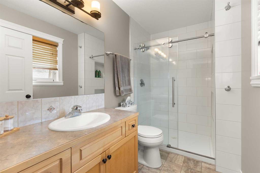 Welcome to 928 3rd Street SW in Redcliff a beautifully maintained 2000 sq ft 1½ storey home with timeless brick curb appeal and a thoughtfully designed layout inside and out. The exterior immediately stands out with its attractive brick frontage, rock landscaping with mature vegetation, and fantastic curb appeal. Step inside to a generous front entryway, where a bright main-floor office sits just off the entrance, featuring a large front-facing window that floods the space with natural light...ideal for working from home or a quiet study. The main floor offers a flexible formal dining area that could also function as a reading nook, secondary living space, or flex area depending on your needs. Toward the back of the home, you’ll find a spacious and inviting living room complete with built-in shelving and a stunning see-through gas fireplace shared with the kitchen - a unique feature that adds warmth and character to both spaces. The kitchen is well-equipped with a full stainless steel appliance package, ample cabinetry, generous counter space, and multiple dining options including a dedicated eating area and raised breakfast bar seating. Patio doors provide direct access to the back deck, making indoor-outdoor living effortless. Upstairs, the home offers three bedrooms, including a spacious primary retreat featuring a walk-in closet, a 3-piece ensuite with a full tiled walk-in shower, and exclusive access to a covered private balcony...the perfect spot for morning coffee or evening relaxation. A second full bathroom serves the additional bedrooms. The basement provides even more living space, including a comfortable family room, a 3-piece bathroom, and a versatile bonus area currently set up as a mini stick hockey arena! This space can easily be converted back to storage or adapted to suit your needs. The utility room also offers excellent additional storage. Completing the home is a 22’ x 24’ attached garage that is finished, insulated, drywalled, heated, and equipped with built-in shelving. The fully fenced backyard is a true highlight, backing directly onto a green space with no rear neighbours. Enjoy a covered deck plus an additional uncovered patio area, a custom privacy wall for shelter and seclusion and immaculate landscaping filled with perennials and flowers. There’s plenty of room for kids’ play equipment, entertaining, or simply enjoying the outdoors.