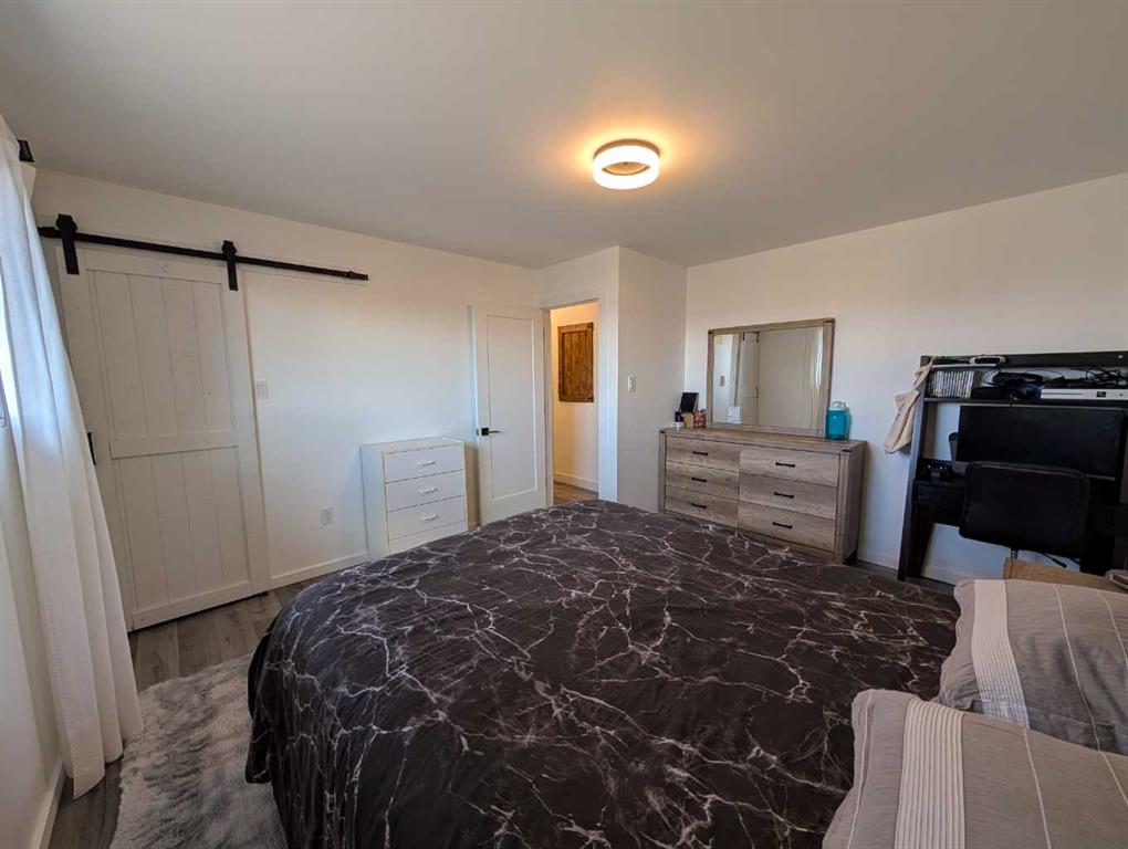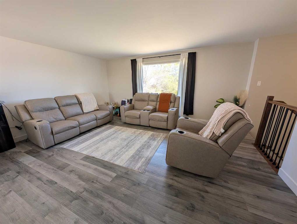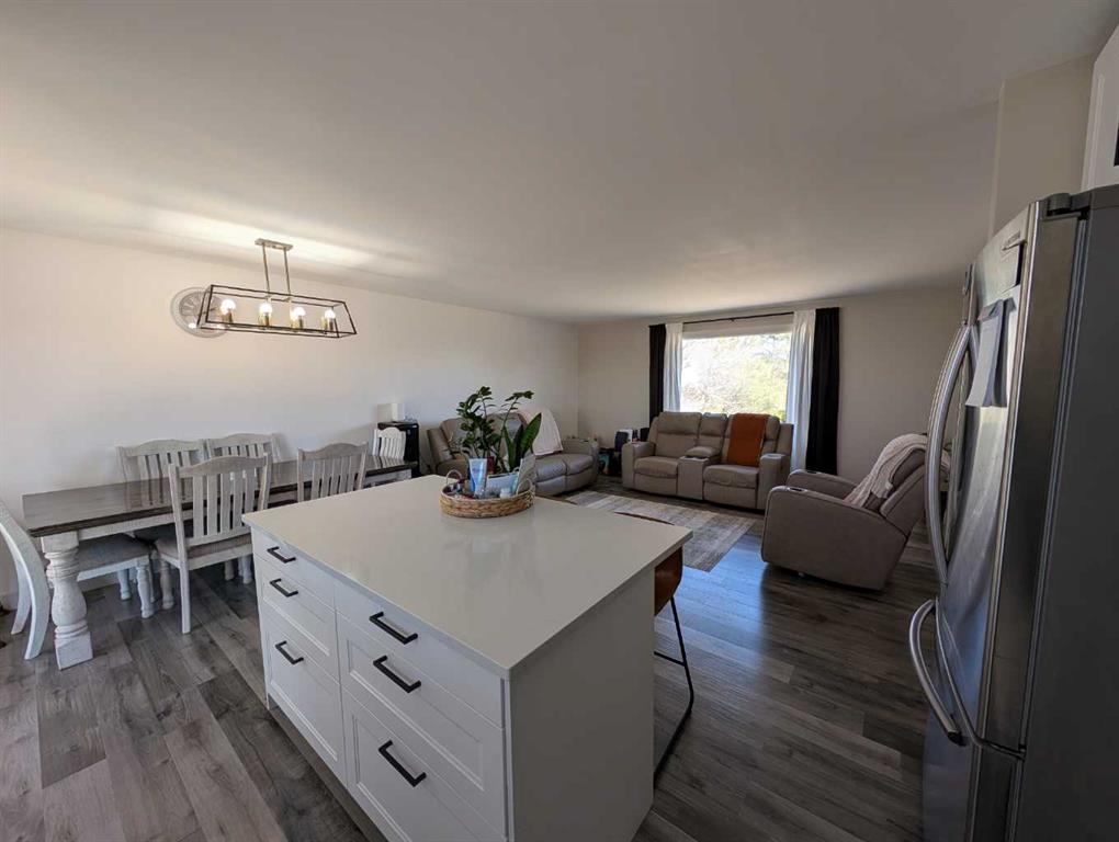 Welcome to 422 Main Street S in Redcliff—an updated and inviting home offering comfort, space, and future potential. The main floor has been tastefully renovated in 2021 and offers 960 sq. ft. of bright, functional living space. Large windows fill the spacious living room with natural light. Open concept kitchen features stainless steel appliances, a clean white subway tile backsplash, white cabinets, quartz countertops and a center island. A comfortable dining area leads you to the deck through sliding doors. The main level is complete with two generously sized bedrooms, including a primary with a walk-in closet, along with a full 4-piece bathroom. The walkout basement is partially developed with drywall already completed, offering a blank canvas to finish to your liking—ideal for adding extra living space, bedrooms and a bathroom. Outside, enjoy the large deck—perfect for relaxing or entertaining. The 50 x 130 lot provides plenty of yard space, along with a storage shed and rear off-street parking. Whether you're a first-time buyer, investor, or looking for a home with potential to add value, this property checks all the boxes.