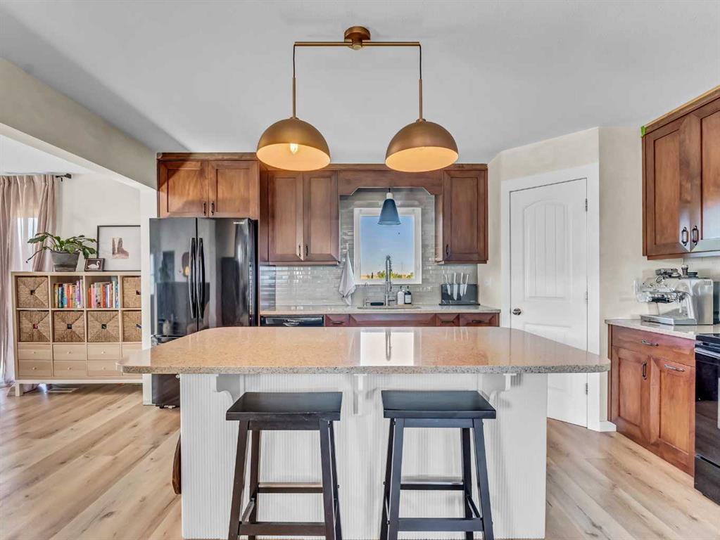 If you’ve been looking for that perfect mix of peaceful country living with the convenience of being just minutes from Medicine Hat — this is it. This 2.19-acre turnkey property is beautifully updated and ready for its next family. Inside, this home shines with updates throughout. The kitchen renovation features custom Hiebert cabinetry, quartz countertops with an island offering seating, an attractive backsplash and updated appliances, lighting, and fixtures — creating a modern, timeless space. On the main floor you’ll appreciate an Open concept footprint with a flex space perfect for peaceful morning coffee, the kitchen, dining and cozy living room, find 2 bedrooms, 2 full bathrooms and access to both the front and back decks. The primary suite offers beautiful custom built in closets, a gas fireplace, and a luxurious en-suite with a dual-head custom tile shower, quartz counters, and double sinks. The walkout basement is fully developed with in-floor heating, 3 additional bedrooms, a flex area off the access to outside, a 4-piece bath, laundry room (with cabinets + washer/dryer included), and a full theater room — complete with projector, screen, and receiver. Step outside from the dining area onto the deck, perfect for BBQs and entertaining while overlooking the yard with access to your heated above ground pool. The irrigated yard has plenty of space for kids, pets, or future development. Bonus inclusions: 3 storage sheds, a greenhouse, chicken coop, kids’ play center, trampoline, a John Deere lawn tractor, and a quad with snow blade — everything you need to just move in and enjoy. The acreage is fully fenced with post-and-wire plus chain link cross-fencing (2019), and a newer concrete driveway (2019) leads you right up to the heated single attached garage. Inside the garage you’ll find a functional workspace and an in-ground 1000-gallon cistern, fed by the well with a brand-new pump (2021). The upgraded water filtration system includes a softener (2015), 120-gallon chlorine filtration (2019), and carbon/sediment filters (2019) — all set up for peace of mind. This private, well-cared-for property truly has it all — updates, space, and comfort in a country setting close to town. Don’t wait — book your private showing today!