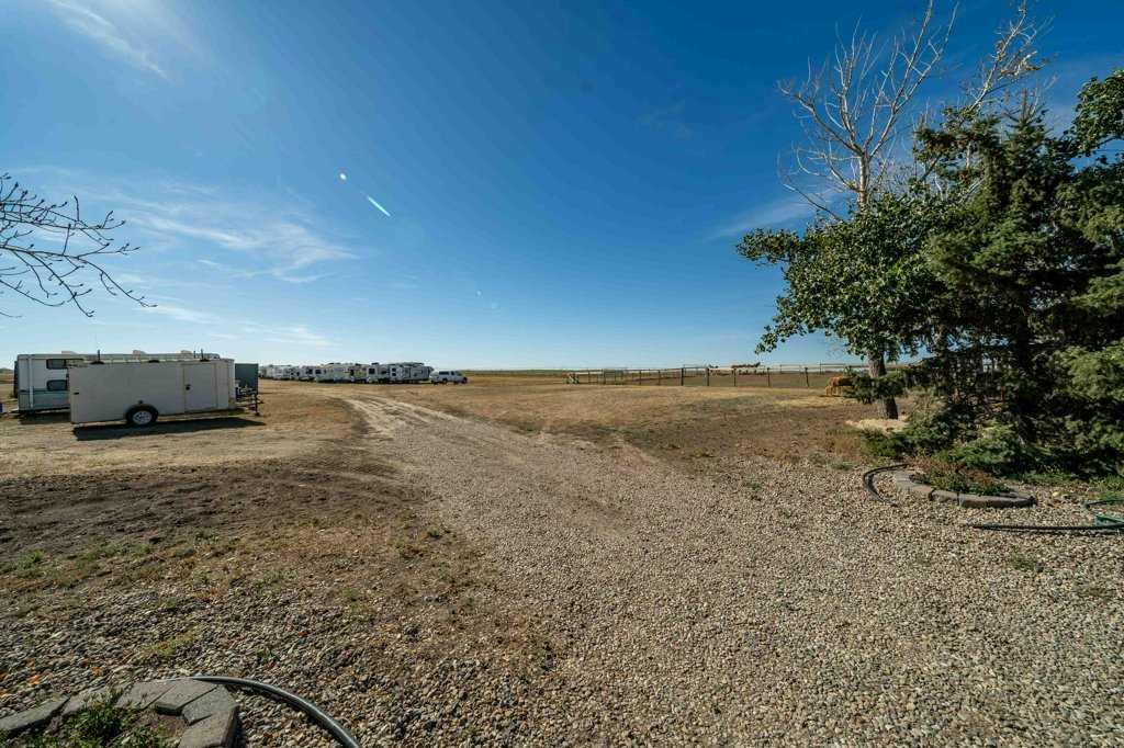 Welcome to this exceptional multi-use acreage offering a rare combination of serene country living, income-generating potential, and equestrian-friendly amenities — all just ½ mile from your nearest neighbor. Set on beautifully maintained land, this 2,249 sq ft home features 4 spacious bedrooms and 2 full bathrooms, including a luxurious 5-piece main bath complete with a soaker tub and double shower. Constructed with solid 2x6 framing, this home is designed for durability and comfort with a Carrier commercial-grade furnace and A/C, updated hot water tanks (2017 & 2025), Metal roof and a 2,500-gallon fiberglass cistern with new pump (2024). This is an ideal setup for horse lovers or hobby farmers boasting the fully fenced field with barbed wire, 3½-sided horse shelter accommodating up to 3 horses, large pens for exercise and easy management, open space for future round pen installation, sand-filled riding arena and dog run, multiple outbuildings, including a shop with wood-burning stove and home gym space. This property has a track record of productivity. In years with above-average rainfall, it has yielded up to 30 large square bales of high-quality crested wheat hay, perfect for feeding your animals or selling locally. A long-running RV storage business has operated here for over 12 years, bringing in $8,000–$9,000/year with many loyal, respectful customers. A current permit with Cypress County allows for 100 RV spots, and RV storage infrastructure is in place. Water is no issue here…SMRID water rights. Dugouts on the property, including one that naturally fills with runoff. Manual irrigation system from a service well, connected to multiple underground water lines. Large garden area with available water lines and garden shed