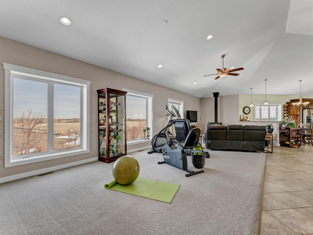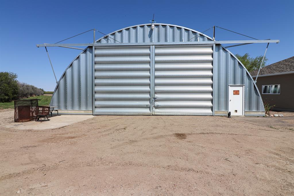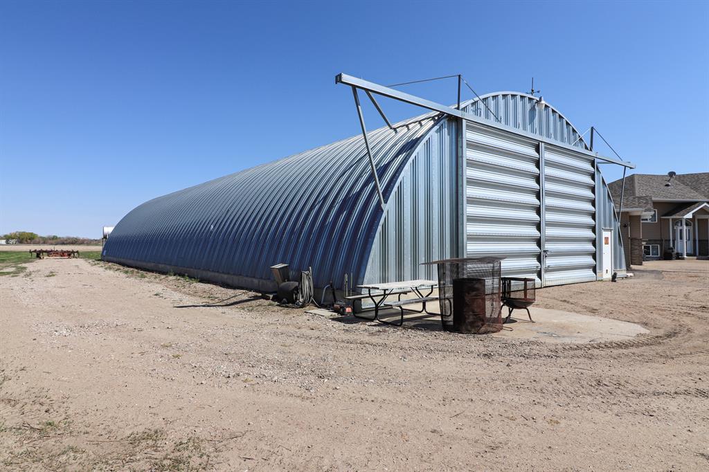 You can have it ALL... Country living, 3km paved from the City. Fully developed 3339 sq.ft. beautiful, modern bi-level built ICF construction to the roof. Geothermal heated, City water. The home has 4 bedrooms, a main floor office, 3 full bathrooms and a triple garage. Infloor heating and efficient home. Massive Quonset - 50x120, as well as 2 sheds. A total of 5.29 beautiful acres of low maintenance, private, picturesque yard with a garden, fruit trees and grassland for any animals or hobbies. The possibilities are endless with this rare find!