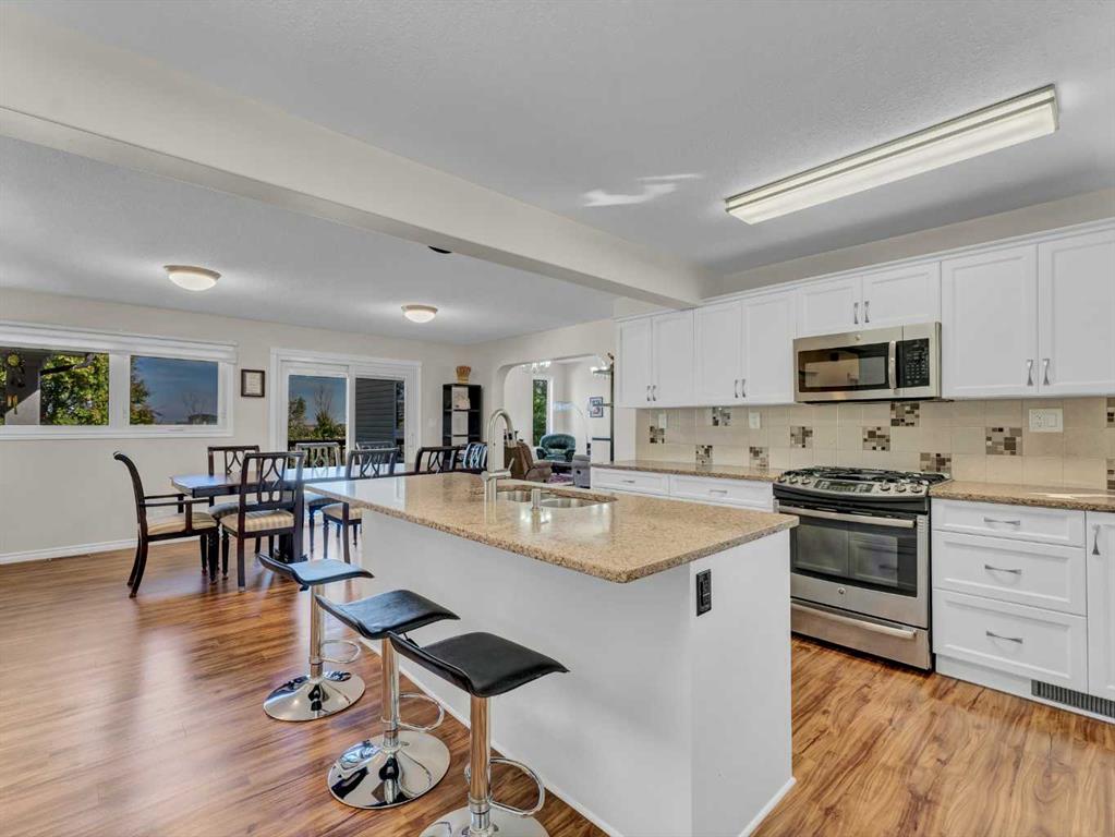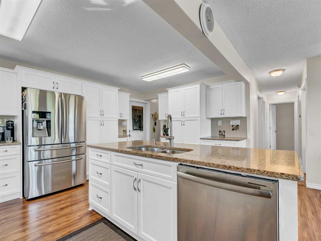 Beautifully set on 3.24 acres in Eagle Butte Estates, just minutes from Medicine Hat. This impressive 1800sq ft Walkout bungalow (plus fully finished lower floor) offers modern country living and has been completely rebuilt within the last 10 years, including wiring, plumbing, interior, and exterior. A spacious entry with 10ft ceilings welcomes you into a bright home office, a granite kitchen with large island, full appliance package and huge dining area that opens to a deck spanning the back of the home to capture the morning sun. The upper deck has a BBQ with gas hook-up and there is a matching lower deck also spanning the back of the house. The living room, also with 10 ft ceilings, features large windows and a cozy electric fireplace, while the primary suite offers a walk-in closet, 5-piece ensuite and deck access. The fully developed, wheelchair accessible walkout basement includes a family room, games area, gym, two additional bedrooms, bathroom with large wheelchair accessible shower. Additionally, there is a room lined with built-in cabinets that is currently being used as a massage spa. This space is ideal for any home-based business. Outside, the property is nearly fully fenced and landscaped with an irrigation system to 90% of the perimeter trees that also waters the fenced garden and berry patches. There is a paved walking path with benches and numerous outbuildings including a heated, attached double garage, a large shop with in-floor heat, a winterized chicken coop, a semi-trailer for storage, a shed, and even a unique observatory with heat, A/C and retractable roof. This building could be repurposed as an office with built-in storage area. Surrounded by mature trees, with city water and access to a shared dugout, this property combines privacy, functionality and endless opportunity for both work and leisure.