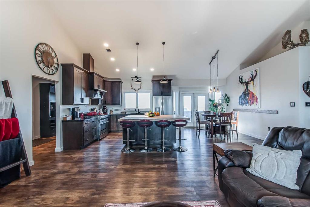 A rare opportunity for private country living close to town! This dream home was built with every detail of comfort and function in mind, from the large decks designed to capture the prairie views to the incredible 1,850 sq ft heated shop. Step inside the main floor, where vaulted ceilings, skylights, and large windows fill the space with light. The living room is warm and inviting, centered around a stunning wood-burning stone fireplace, perfect for cozy evenings. The open kitchen is a chef’s dream with granite counters, custom cabinetry, a butcher-block island, a 36” gas range, and a walk-in pantry the size of an extra room. The adjoining dining area is perfect for gatherings and opens to the back deck for easy indoor-outdoor living. The primary bedroom offers a peaceful retreat with double closets and beautiful natural light from multiple windows. A full bathroom featuring a clawfoot tub—perfect for unwinding under the starry skies—a second bedroom, main floor laundry, and a huge mudroom with outdoor access complete this level. Additional features include central vac and in-floor heating throughout the lower level. Downstairs boasts 9-foot ceilings, a large family room, three additional good-sized bedrooms, a full bathroom, a utility/storage room, and a storm shelter/cold room for storage or safety. Outside, you’ll find a fenced-in dog run off the front porch, a garden area, storage buildings, ample parking, and a cozy fire pit space with swing seating. The attached 26x60 (yes, 60’!) + 14x24 heated shop is a dream on its own, complete with in-floor heat, 220 power, an 18-ft door, and a 3-piece bathroom. From the covered front deck, enjoy quiet mornings with sunrise views, then spend your evenings watching the sun set across the open fields from the spacious back deck. This acreage offers complete privacy, surrounded by open views with amazing neighbours about half a mile away and no chance of development nearby. School bus pickup is right in the driveway, and best of all, it’s quiet with no city or highway noise. Beautifully built, thoughtfully designed, and located less than 15 minutes northwest of Redcliff, this property truly delivers the best of country comfort and practical luxury.