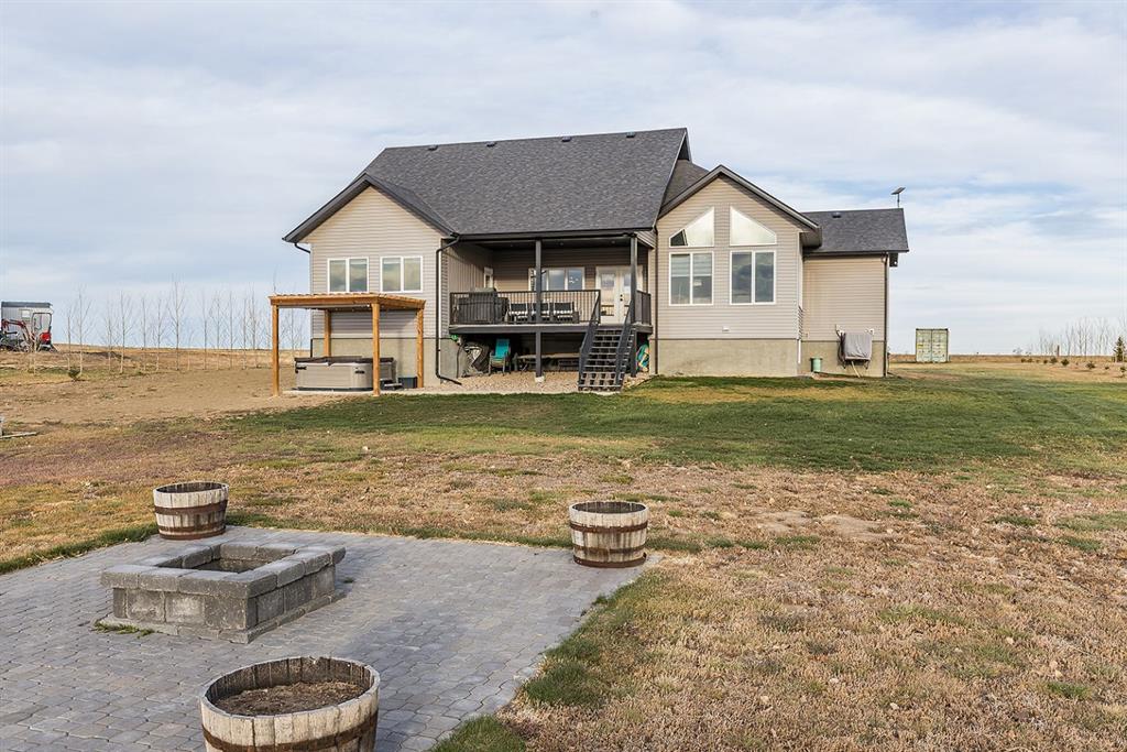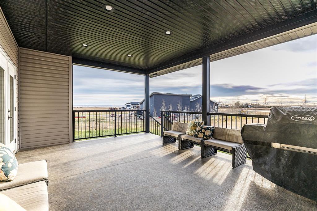 At the center of it all is a beautiful custom bungalow that blends thoughtful design with timeless style. The main floor welcomes you with an open-concept layout that frames those incredible lake views from every angle. The kitchen is built for connection — a large island for kids to perch at, quartz countertops, high-end appliances, and plenty of space to cook, gather, and celebrate!! Vaulted ceilings and a cozy fireplace make the living room the heart of the home, whether you’re hosting friends or winding down after a day on the lake. Step out onto the covered deck to take in the calm water, the huge yard, and the simple joy of having nature as your backdrop. The primary suite feels like a private retreat with its own lake views, a spa-inspired ensuite, and a clever pass-through walk-in closet connected directly to the laundry room — the kind of everyday convenience you won’t know how you lived without. Two more bedrooms and a full bath round out the main floor. The fully finished lower level adds even more room for living and playing. A spacious family area, rec room, and a flexible space perfect for a gym, playroom, home office, or hobby room make it easy for everyone to have their own corner of the home. Two additional bedrooms (the flex space could become a 6th if needed) and another full bath create the ideal setup for kids, guests, or multigenerational living. And then there’s the garage — oversized, heated, a dog run, hot & cold water, and built with both practicality and possibility in mind. Park multiple vehicles, set up a workshop, or store all the gear that comes with true acreage and lakefront living. With city water from West Side Water Co-Op and pressurized for irrigation, caring for the property is effortless. The expansive yard is ready for family barbecues, outdoor adventures, and long, relaxed evenings under the open prairie sky. And with the lake just steps away, every season brings something to look forward to — swimming, fishing, paddleboarding, skating, or simply sipping your morning coffee by the water.
