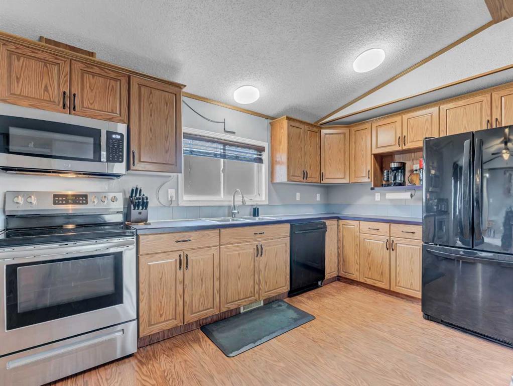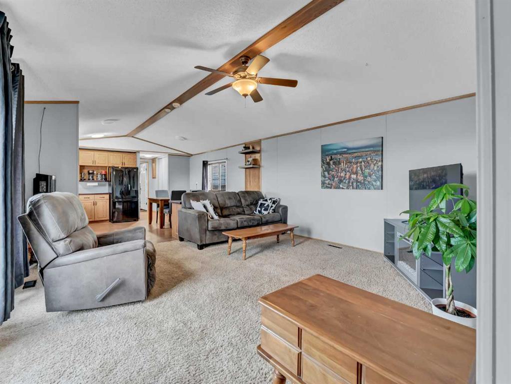 Enjoy quiet country living just minutes from Medicine Hat. This well-maintained 3-bedroom, 2-bathroom mobile home on 2.02 acres of well-drained, partially treed land with great views of the city and Dunmore. The home features an open-beam design with vaulted ceilings that sprawl the main living areas, spacious kitchen, dining and living area, with views out either side of the home and a primary bedroom with a 4-piece ensuite. It’s skirted with 6-inch insulation, Tyvek wrap, and vinyl siding, anchored with steel cables to reinforced concrete footings built to CMHC specs. The property includes all-weather crushed concrete driveway offering loads of parking, outdoor deck spaces and a manageable fenced in area for pets and kids with loads of additional land to use as you please. There’s room for kids to play, space for animals, or potential to build your dream home while keeping the mobile as a guest house. The overside garage sized at 26x28 makes for great parking and a shop with a stove heater. Located on the south side of City View Estates—just past Dunmore—this property offers great value, privacy, and convenience.