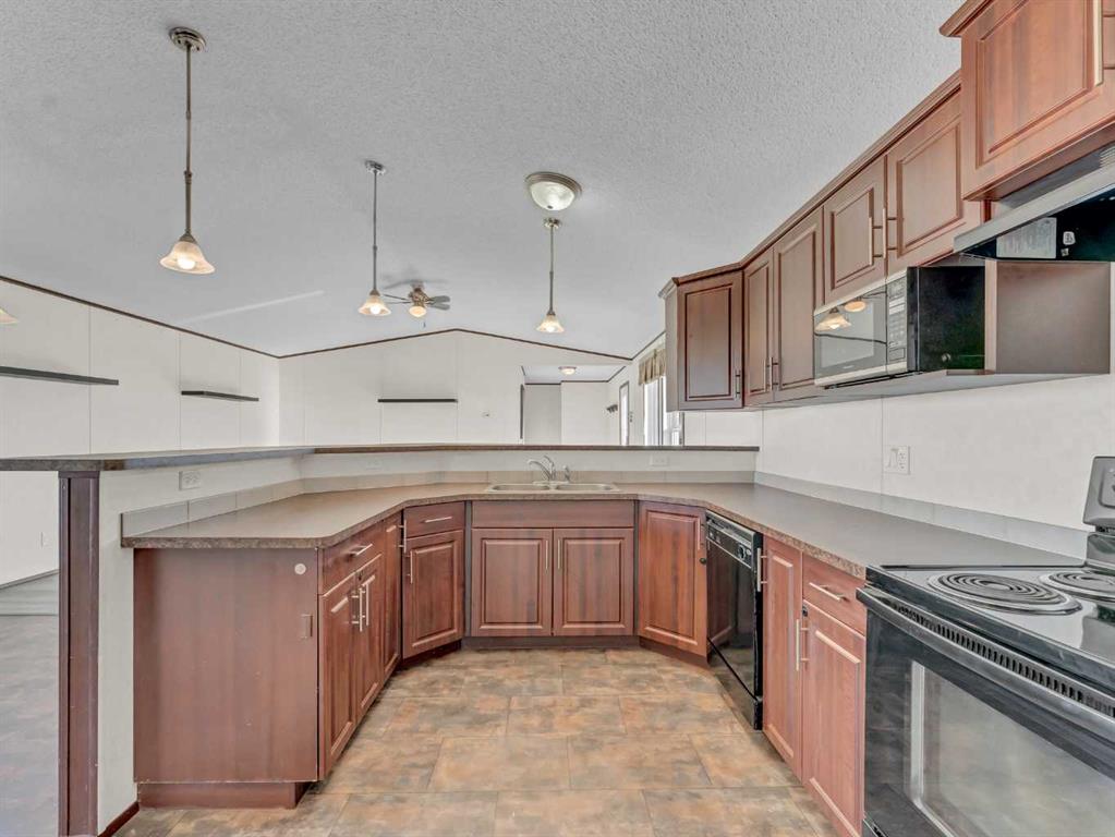 Experience the perfect blend of quiet country life and modern style on this expansive 9.98 -acre property. Featuring a spacious modular home, this 3-bedroom, 2-bathroom residence boasts a sleek, contemporary feel. The heart of the home is an open-concept living area, highlighted by a kitchen with rich, dark cabinetry and a convenient corner pantry.