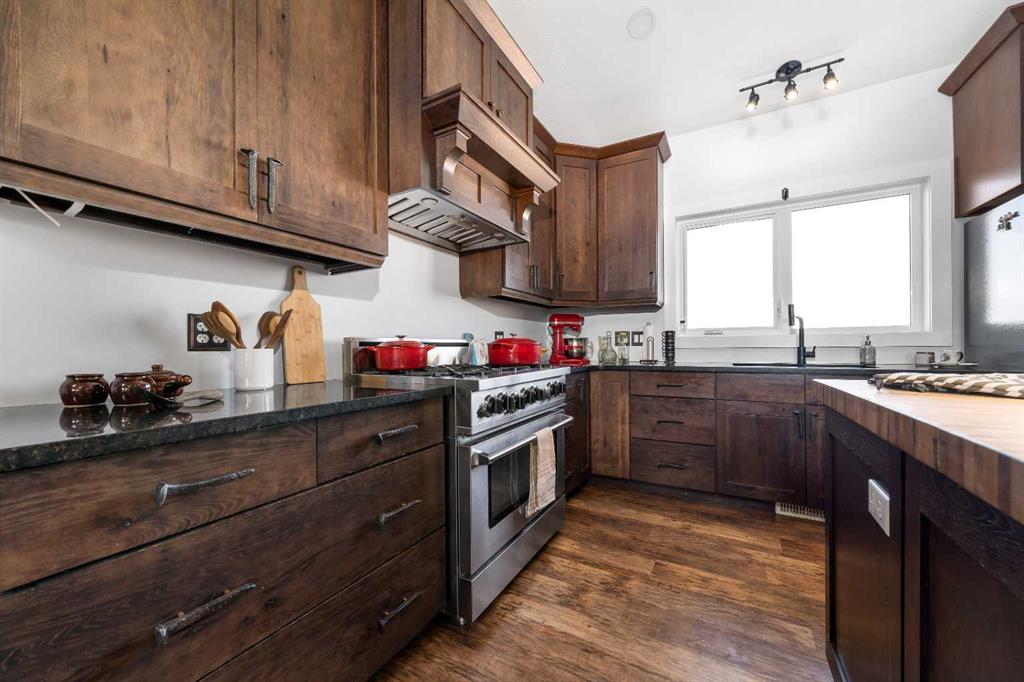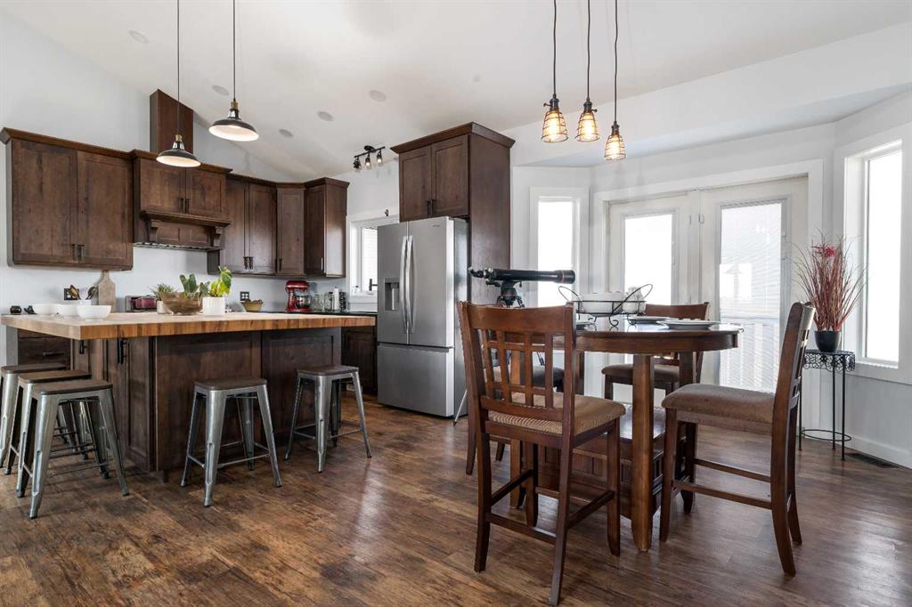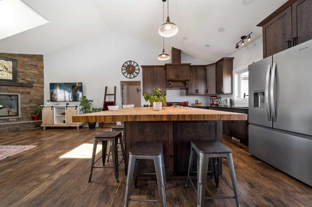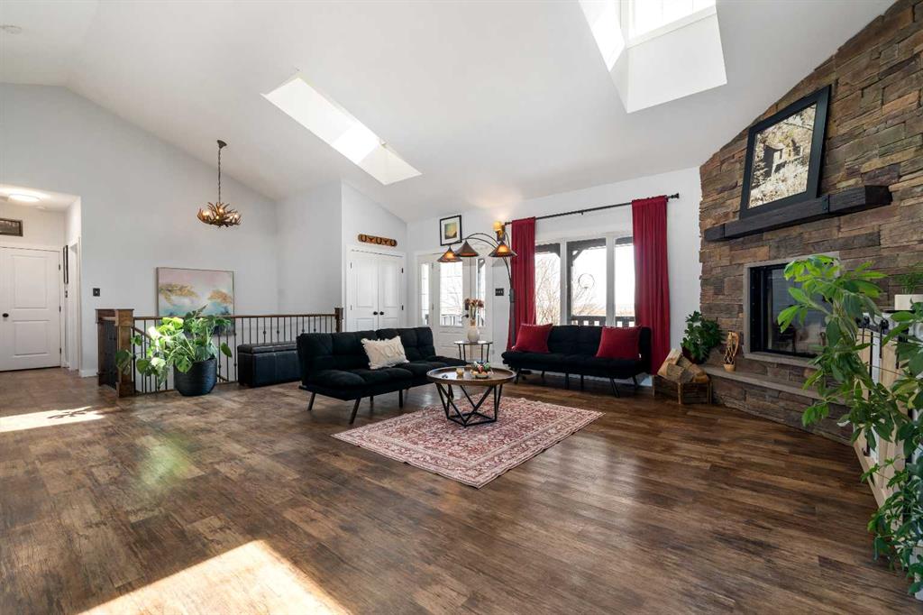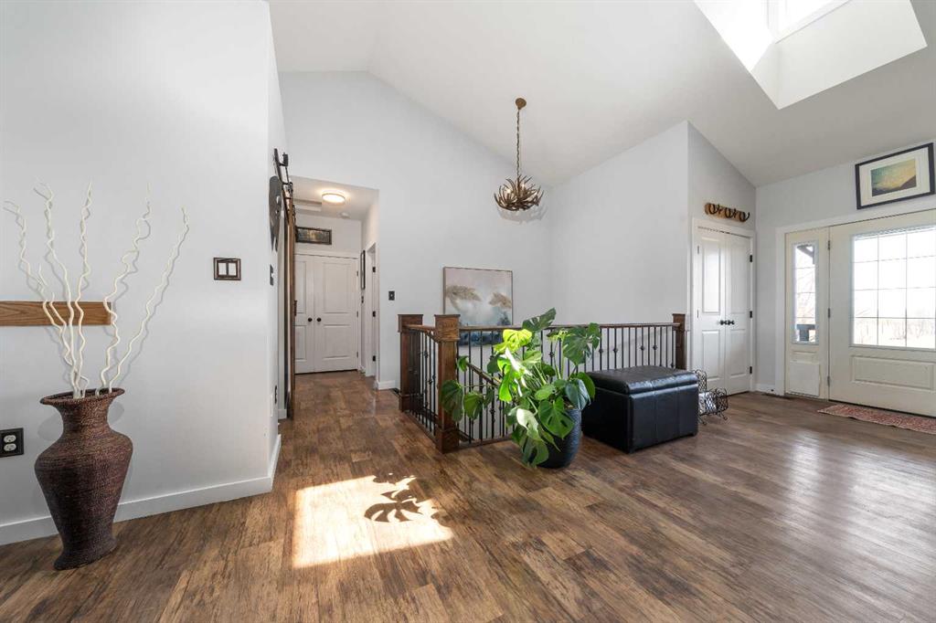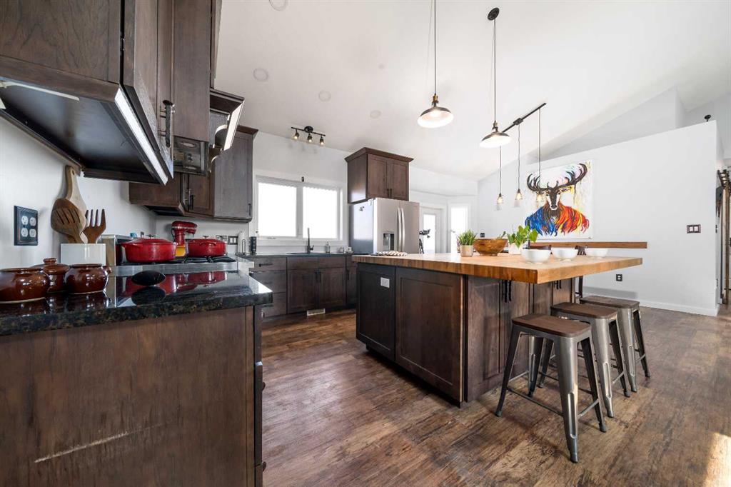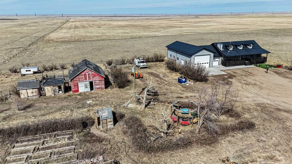 A rare opportunity for private country living just minutes from town! This stunning acreage has been thoughtfully designed with expansive decks that capture breathtaking prairie views to the impressive 1,800 sq ft heated shop. The bright and welcoming main floor boasts vaulted ceilings, skylights, and large windows that flood with natural light. The living room is warm and inviting, with a focus on the beautiful wood-burning fireplace. The open-concept kitchen is a chef’s dream, featuring granite countertops, custom cabinetry, a butcher-block island, and an impressive walk-in pantry. The dining area is ideal for entertaining and offers seamless access to the back deck for indoor-outdoor living. The primary bedroom provides a peaceful retreat with double closets and abundant natural light. A full bathroom with a classic clawfoot tub offers the perfect place to unwind, while a second bedroom, main floor laundry, and a spacious mudroom with outdoor access complete the main level. The fully developed lower level features 9-foot ceilings, in-floor heating, a large family room, three additional bedrooms, a full bathroom, utility/storage space, and a storm shelter/cold room. So much room for the whole family, inside and out. Outside, you’ll find everything you need to enjoy acreage living: a garden area, storage buildings, ample parking, and a cozy firepit space with swing seating. The barn has a walk in cooler, thats insulated, stainless steel sheeted and rails with a temperature controlled refrigeration system. Water for the yard is provided by a well and the house is serviced by a 5500 gallon cisternThe attached heated shop is a standout feature, complete with in-floor heat, 220 power, an 18-ft overhead door, and a 3-piece bathroom. Enjoy peaceful mornings on the covered front deck with sunrise views, and unwind in the evenings on the spacious back deck. This home does not disappoint. With school bus pickup right at the driveway, this property offers quiet country living with unmatched convenience—less than 15 minutes northwest of Redcliff. Contact your local neighbourhood REALTOR® today!