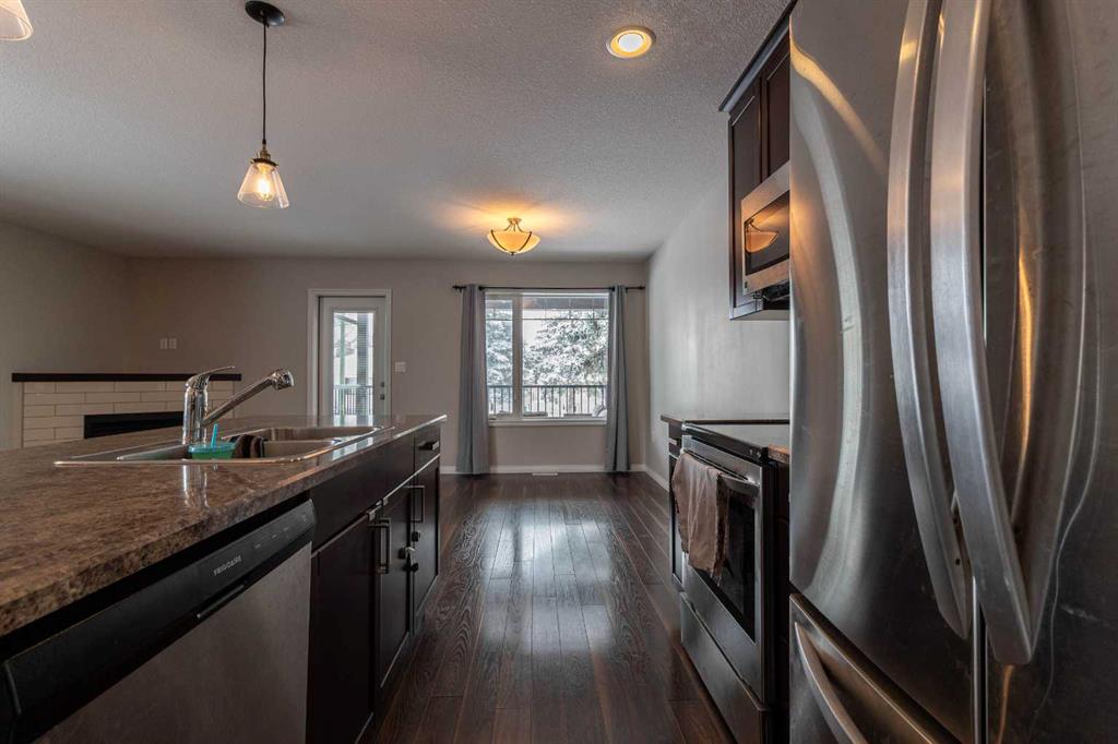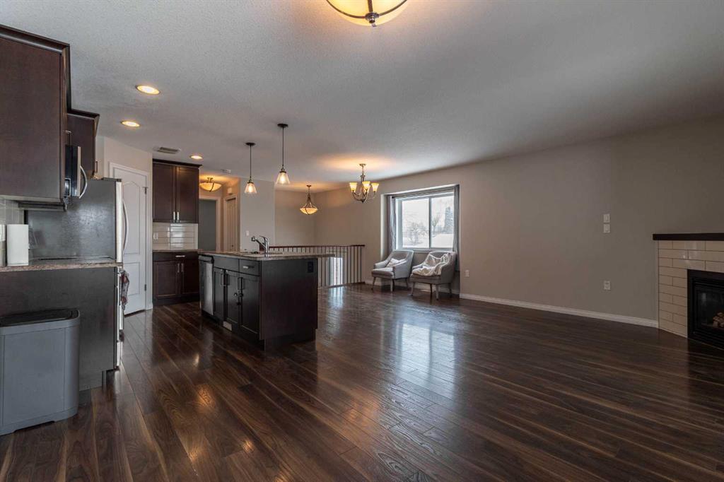 Designed with functionality in mind, the open-concept main floor provides a versatile layout perfect for everyday living and entertaining. The kitchen features ample cabinetry and counter space, a corner pantry, and a central island that flows seamlessly into the dining area and spacious living room. Cozy up by the gas fireplace or step out onto the private covered deck—ideal for relaxing or hosting guests.