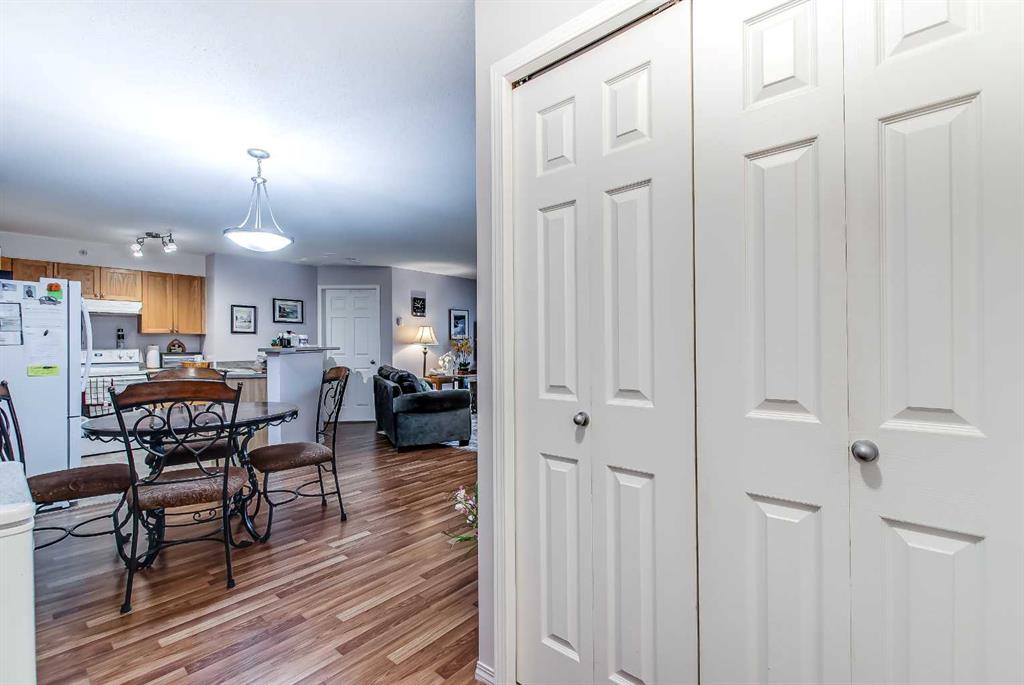 Move-in ready, this clean and well-maintained unit offers an open concept design with laminate flooring, oak kitchen, dining space, and a spacious living room leading to a covered deck with gas BBQ hookup. The primary suite includes a walk-in closet & 4-piece ensuite, plus there’s a second bedroom, full bath, and in-suite laundry. Underground parking, storage, and condo fees that cover all utilities (except phone & cable) make this an easy choice. Professionally managed for peace of mind!