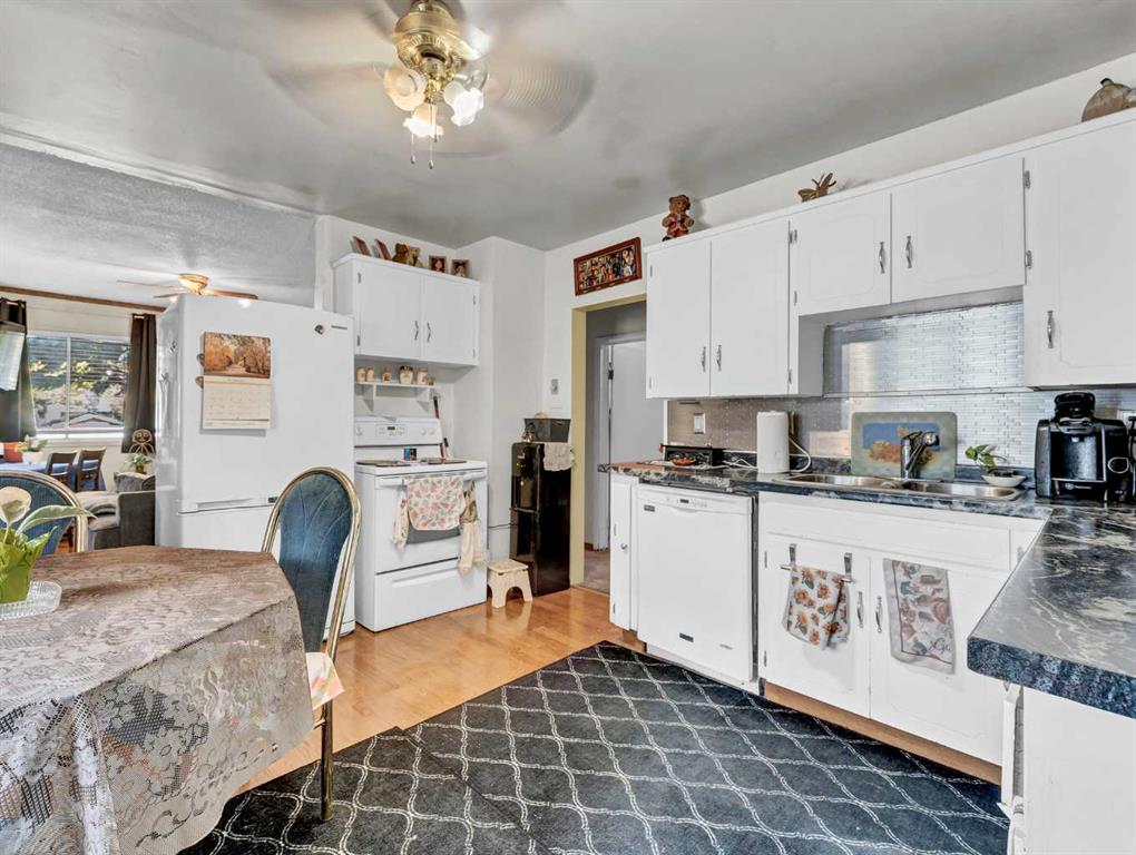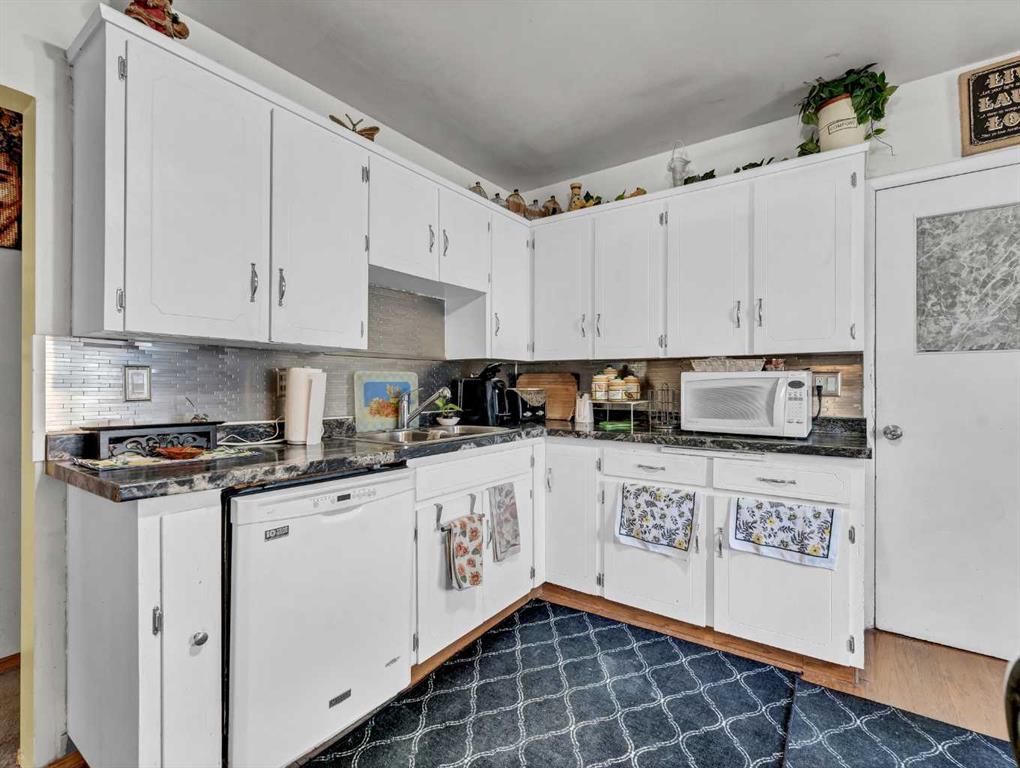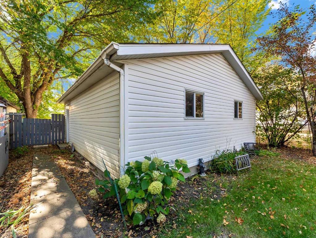 Centrally located and within walking distance to many great amenities, this home offers excellent value and versatility. The main floor features two bedrooms, beautiful hardwood flooring, a spacious living room, and a functional kitchen and dining area with ample cabinetry and a full appliance package. The basement includes two additional spacious bedrooms, a laundry area, plenty of storage, and a generous family or recreation space. Outside, you’ll find a fully fenced and landscaped yard with a lovely garden, mature trees and shrubs, plus not one—but two garages: a newer 24’ x 26’ detached garage and a 12’ x 19’10” garage/workshop.