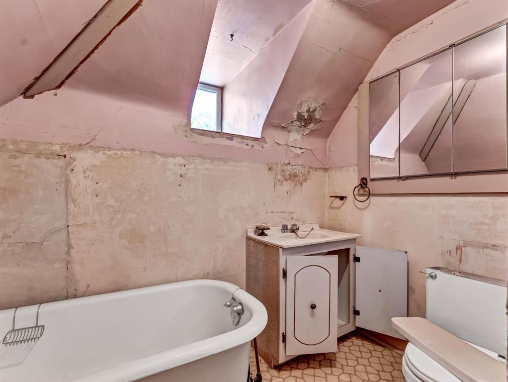 Step back in time and discover the unique charm of this character-filled home, full of history and opportunity. This home is ready for a creative eye and a visionary heart! The main floor, featuring hardwood floors and 10 foot ceilings, hosts 1 bedroom with ensuite bath, an office, spacious living and dining room and a bright, vintage kitchen. On the upper level you'll find a second bedroom and bathroom. The basement offers a 2 piece bath, laundry, ample storage space and a work bench for all your projects. This home is a gem waiting to be polished! Yes, it needs love, but the potential is shining through. Nestled on a large 50x150 foot private lot just minutes from Strathcona Park, pool, schools and walking paths along the river. A large double detached garage and a yard full of greenery complete this great property. Whether you're a seasoned renovator or an old-home enthusiast, this property is waiting to be brought back to life! Book your private showing today!