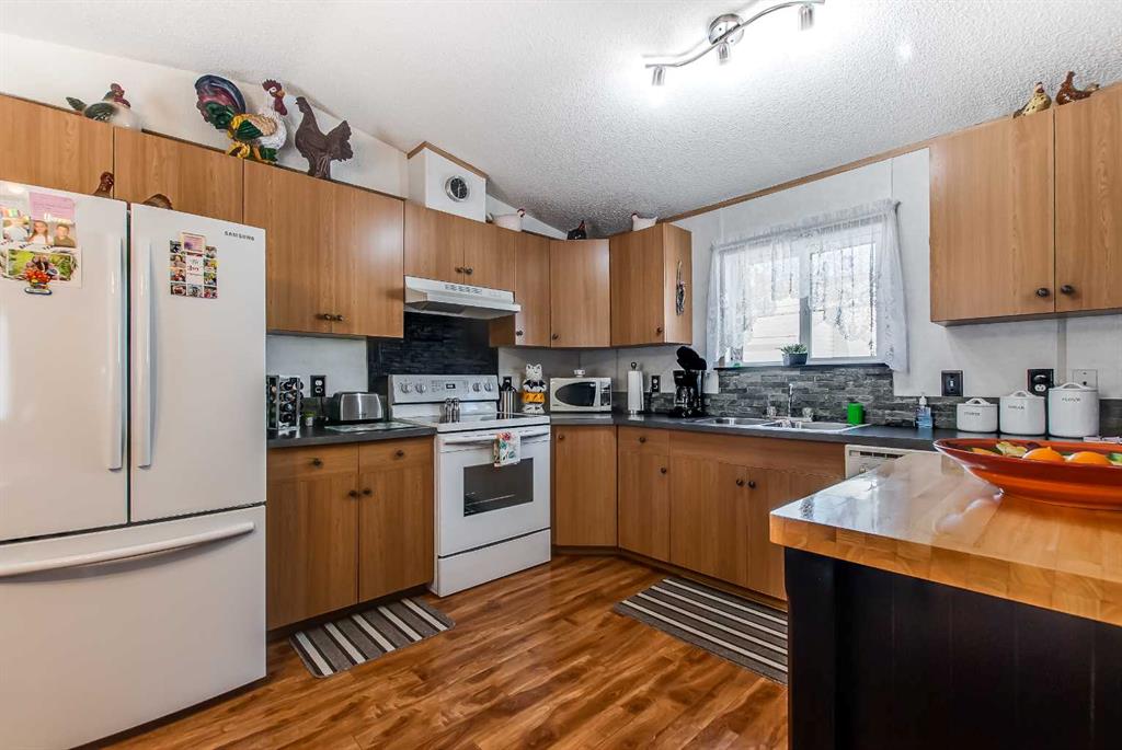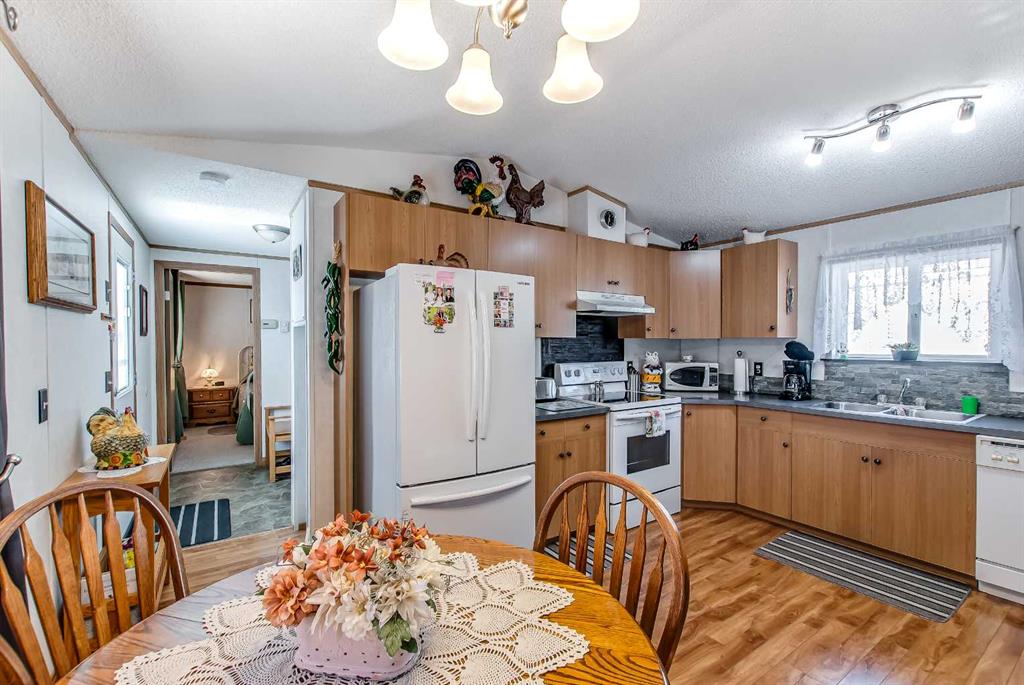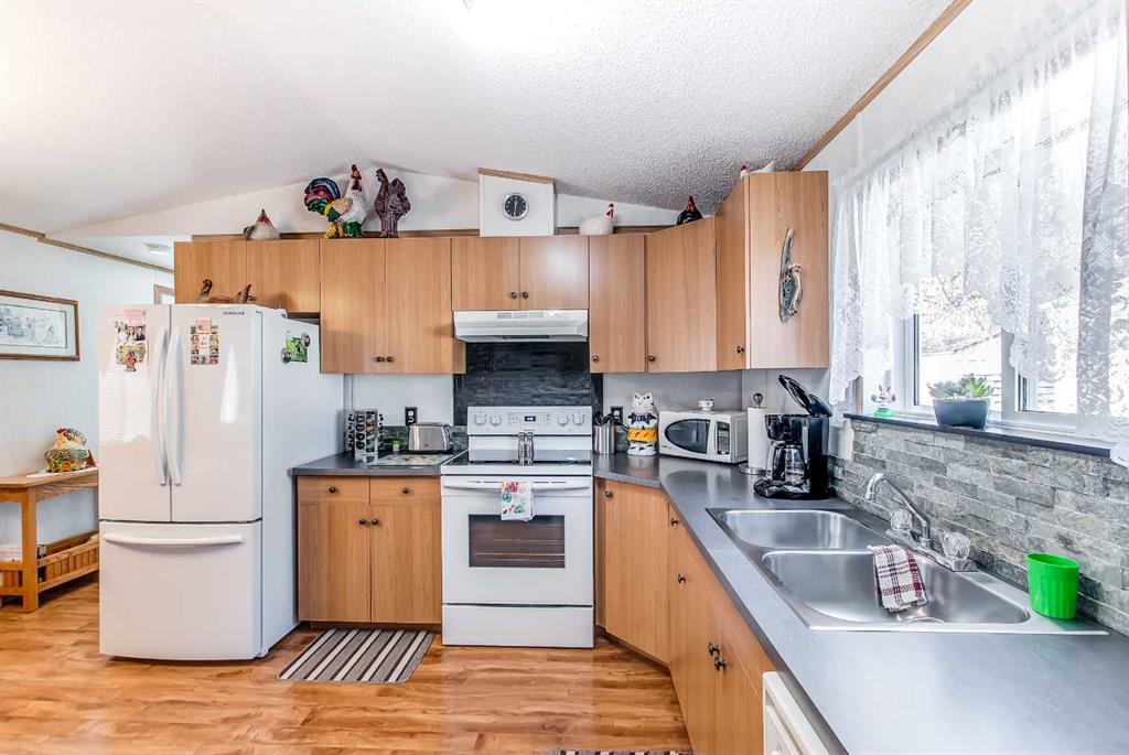 Move-in ready and on its own lot! This charming mobile home is tucked away in a quiet 55+ community in Riverside, just steps from parks, walking paths, shopping, and downtown amenities. The open-concept main living area features vaulted ceilings and a bright, spacious kitchen with a center island, plenty of cabinet space, and a dining area that flows easily into the living room. There are two comfortable bedrooms, a full four-piece bathroom, and convenient in-suite laundry with extra storage. Outside, you’ll enjoy a fully fenced yard (except a small entryway at the front) with a deck, patio, and low-maintenance landscaping, plus a double parking pad out front. Recent updates include a new hot water tank, washer, and dryer (all just one year old). Condo fees are an affordable $119/month and include water and common area maintenance. A great option for anyone looking for easy, affordable living in a peaceful location!