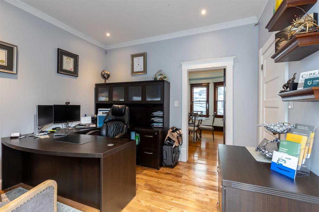 Located on the highly sought-after SE Hill, this 1913 character home on Belfast Street combines historic charm with thoughtful updates. The main floor offers a family room, dining room, kitchen, main floor laundry, a 2-piece bathroom, and a versatile office with its own exterior entrance—ideal for a home-based business. Original hardwood, classic French doors, a welcoming front porch with a swing, and an impressive central staircase highlight the home’s timeless appeal. The second level features three bedrooms, a renovated 4-piece bathroom complete with a soaker tub and separate walk-in shower, and a spacious walk-in closet in the primary bedroom. From this level, you can also access a private upper balcony with dura-deck and newer railings.