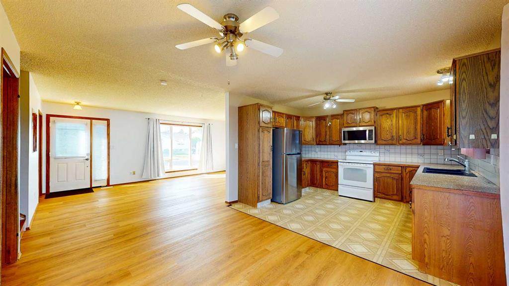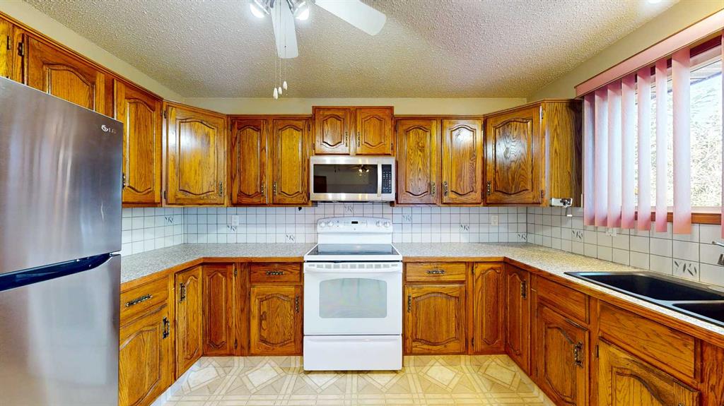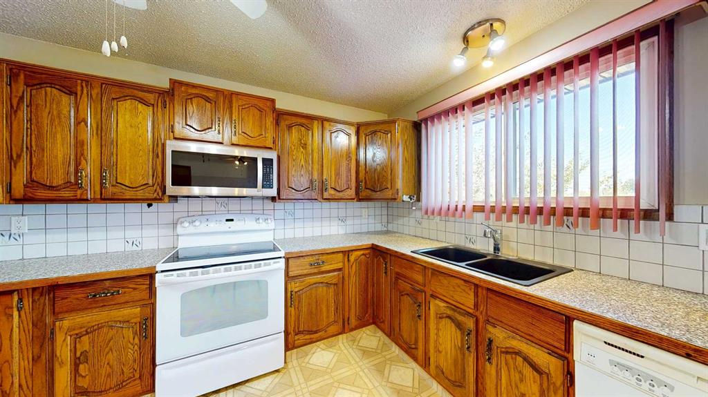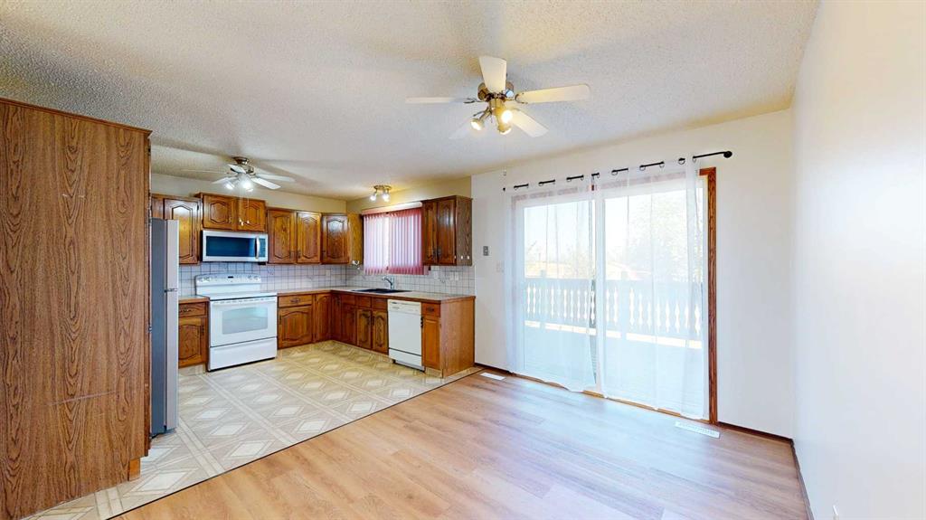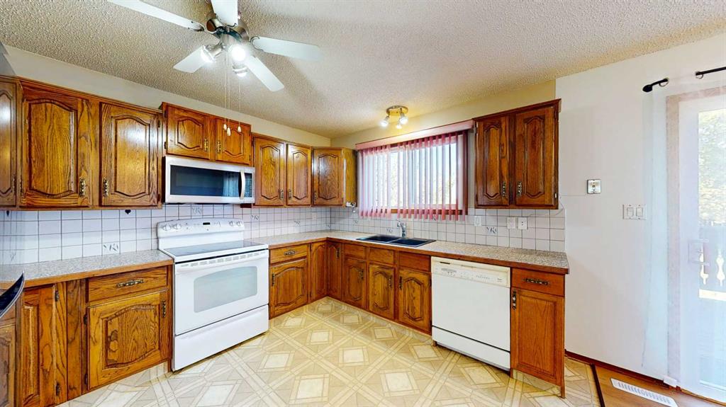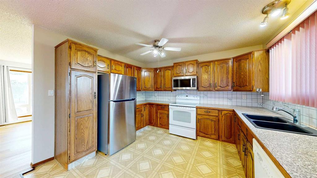Southridge four level split with 4 bedrooms, two baths, full appliance package and super location. There are two larger bedrooms up with plenty of closet space and a 4 piece bath with cheater door to primary bedroom. Plenty of cabinets in this work efficient kitchen along with garburator, new sink and counter tops and patio doors to a lovely newly painted deck. Extras such as R50 insulation in attic, newer windows, patio doors and front door, new flooring in living and dining area, new asphalt on large drive that could park a smaller RV. Huge yard to give plenty of room to build a 26x26. Third level has rough in for gas fireplace if that is your choice. So much storage space in this home. Do not forget the shed that could hold a small car. Close to all amenities. Contact your favourite Agent to view.