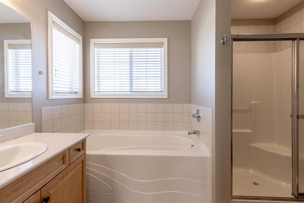 Welcome home to this beautifully updated two-story retreat, perfectly positioned on a quiet street across from a peaceful natural green space. With no neighbours behind — just open acreage views — you’ll love the sense of space, privacy, and connection to nature this property offers in a newer neighbourhood; walkable to a number of schools, pathways and shopping! Step inside and feel immediately at home. Thoughtful updates throughout bring a fresh, modern feel — including quartz countertops (March 2020), appliances updated in 2020 and backsplash in the kitchen and upper baths, new paint, updated flooring, lighting, and more. Every detail has been carefully chosen to create a welcoming modern, move-in-ready home that blends comfort and style. The upper level features three spacious bedrooms, including a spacious primary suite, while the fully developed lower level adds a fourth bedroom and additional living space — perfect for guests, teens, or a home office. With 3.5 bathrooms and a heated attached garage, convenience meets comfort at every turn. Outside, the established yard offers mature trees, shrubs, and landscaping complete with underground sprinklers— ready for your green thumb to make it your own. Shingles replace in 2022. Whether you’re relaxing in the backyard under the covered porch or watching the kids ride their bikes out front, this home invites you to slow down and enjoy the beauty that surrounds you!!