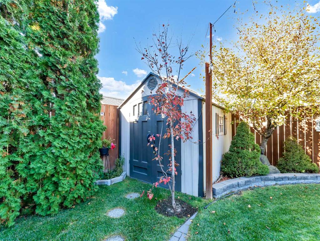 Outside, the backyard is a private oasis — beautifully designed with a curved yin-yang stone patio surrounded by lush green lawn and mature trees for extra privacy. Whether you’re hosting a barbecue, watching the kids play, or simply relaxing in the evening, this yard is made for making memories. Shingles were redone in 2023.