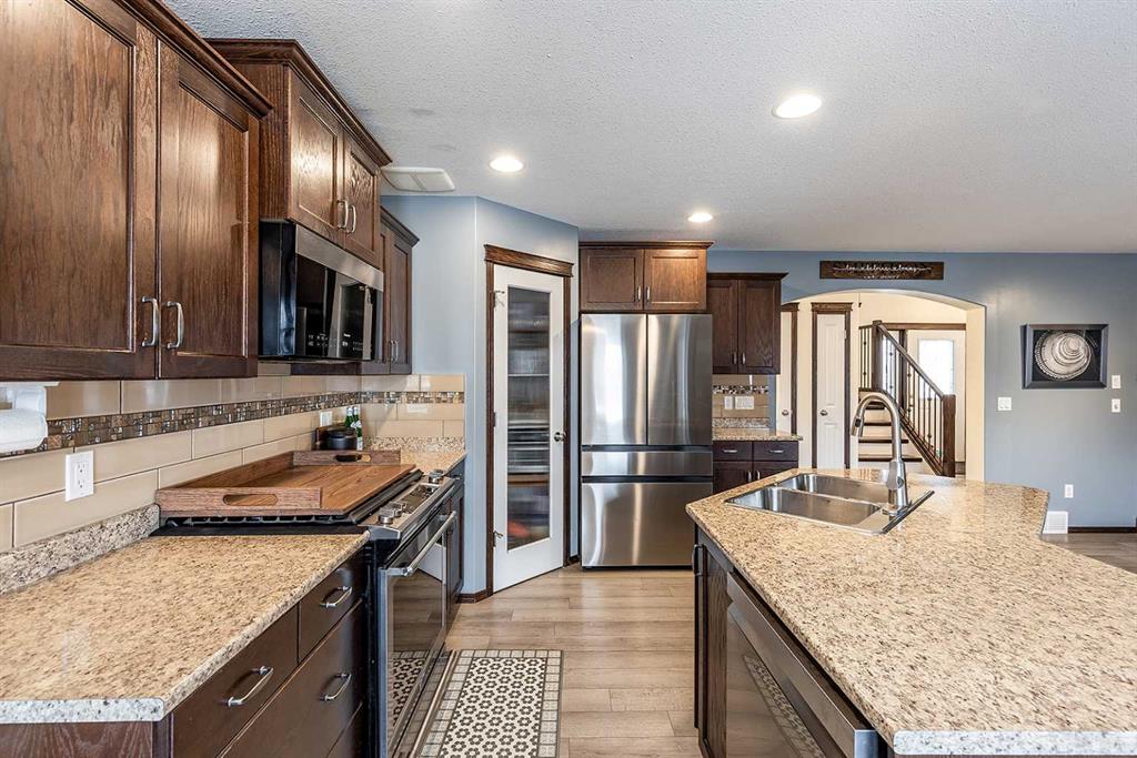 Welcome to your dream family home located in the convenient SE Southridge neighbourhood! Situated near various schools, parks, walking paths and amenities, everything you need is right out your front door. This great two-storey residence nestled on a spacious corner lot offers desirable features and a peaceful ambiance. As you step inside, you'll immediately notice the inviting atmosphere, featuring durable luxury vinyl plank flooring that adorns the home. The heart of the home lies in the open concept living, dining and kitchen area, where you'll find ample space for gatherings and everyday activities. The beautiful kitchen is equipped with a gas stove, a convenient pantry, and a spacious island. The living area offers the perfect blend of style and comfort. Complete with a cozy gas fireplace, this vibrant space is the perfect area to relax and unwind. Completing the main floor is a lovely 2 pc powder room as well as a laundry room with convenient garage access. Upstairs, a family bonus room awaits, providing additional space for relaxation and entertainment. The Primary Suite features a 3 pc Ensuite and walk-in closet. The upper level also hosts two generously sized bedrooms complemented by a full bath for the convenience of the entire household. Venture downstairs to discover the fully finished basement, offering a fantastic recreational area perfect for movie nights or game days. An additional bedroom and bathroom provide flexibility and accommodation for guests or growing families. The basement's styrofoam subfloor ensures warmth and comfort underfoot, enhancing the overall coziness of the space. Step outside to the East facing backyard where you can enjoy those warm summer evenings. The landscaped yard offers a designated dog run as well as underground sprinklers with a smart timer, taking the hassle out of lawn maintenance. Completing this exceptional property is a spacious 25x23 attached garage, providing ample room for parking and storage. Don't miss out on the opportunity to make this wonderful family home your own.