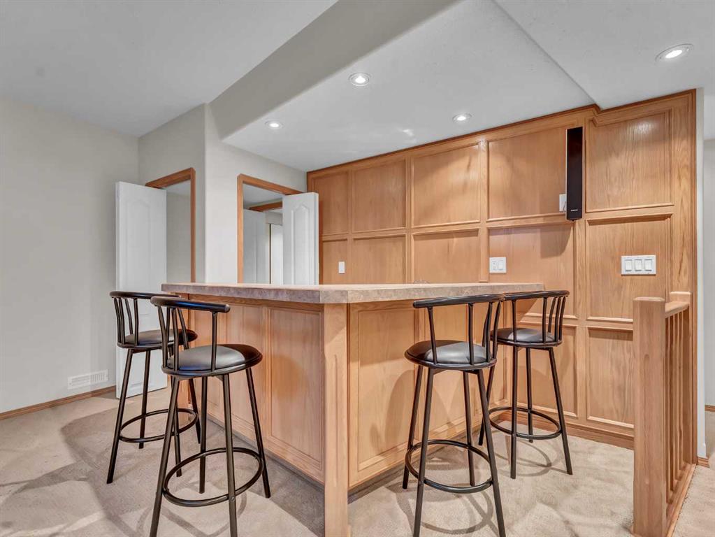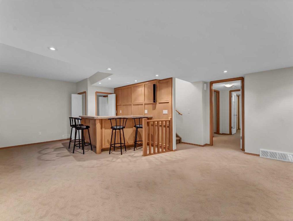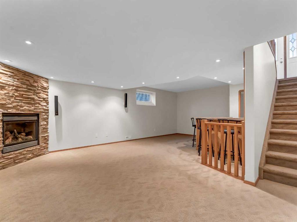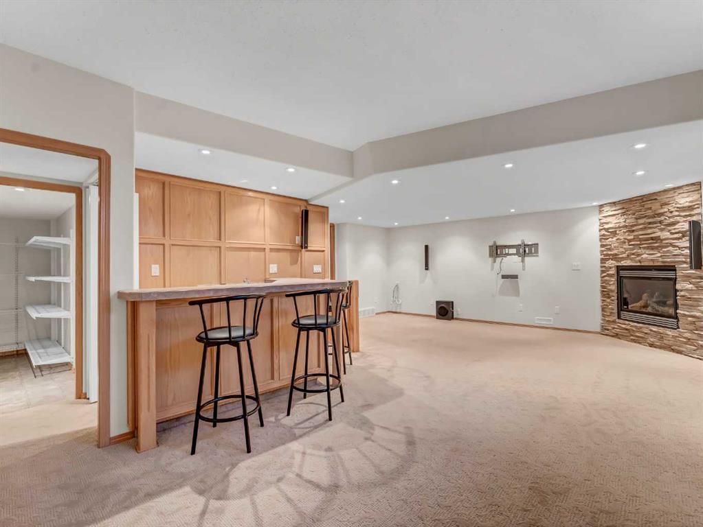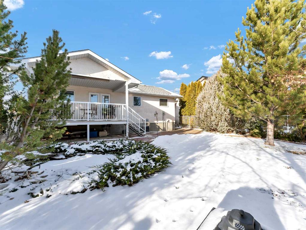 The main floor offers a bright and spacious front living room, perfect for relaxing or entertaining. The eat-in kitchen provides plenty of cabinetry and counter space, making everyday living easy and functional. Two bedrooms are located on the main level, including the primary suite with a private 3-piece ensuite, along with a full 4-piece main bathroom and convenient main floor laundry. Downstairs is an entertainer’s or teenager’s dream. The fully developed basement features a large recreation room with a cozy corner gas fireplace and stone surround, plus a sit-at wet bar with an impressive walk-in pantry—ideal for hosting friends or family. Two additional bedrooms (the smaller one would make a perfect den or office), and a full 4-piece bathroom complete the lower level. Step outside to a beautifully designed backyard with a large covered deck and additional patio area, all fully fenced and landscaped with underground sprinklers and a charming pond feature—a perfect space to unwind or entertain outdoors. Additional highlights include new shingles (2023), central vacuum, and a paving stone driveway with integrated lighting that adds curb appeal and function. A fantastic bungalow offering space, comfort, and thoughtful features—43 Vista Place SE is ready to welcome you home. Average Utilities are $310/month.