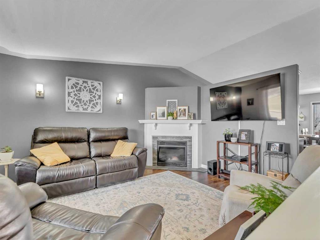 The main floor offers a bright and functional layout featuring three bedrooms, a full 4 piece bathroom, and a spacious kitchen, dining, and living area complete with a cozy gas fireplace. Vaulted ceilings and large windows fill the home with natural light, while the convenience of main floor laundry adds to the ease of everyday living.