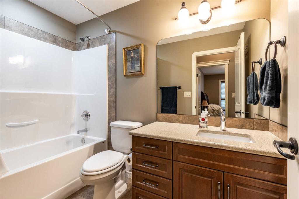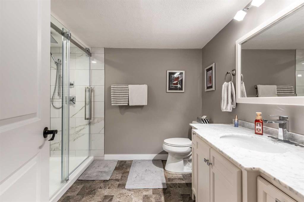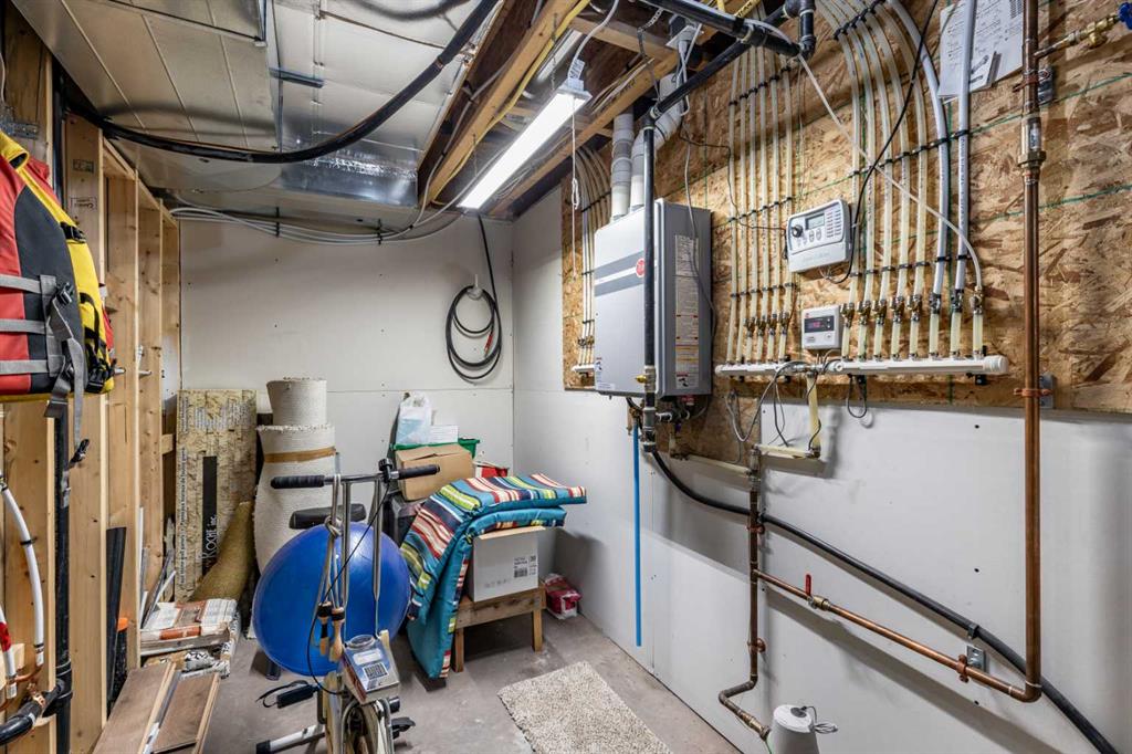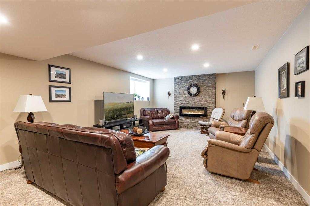 Downstairs offers a ton of additional living space, including a large bedroom with a walk-in closet, a comfortable family room with a feature wall and electric fireplace, and a beautifully finished 3-piece bathroom with a walk-in shower. An additional unfinished room provides great storage or could easily be developed into a yoga room, playroom, or craft space.