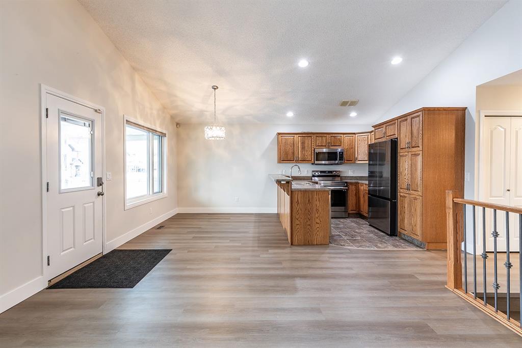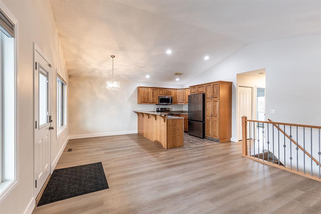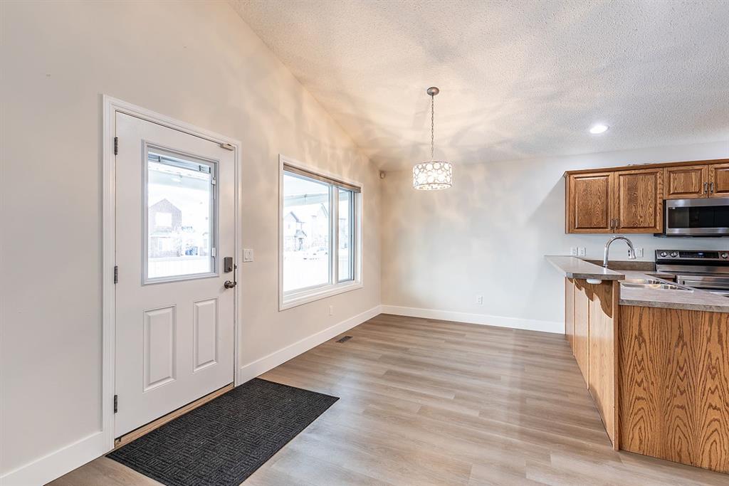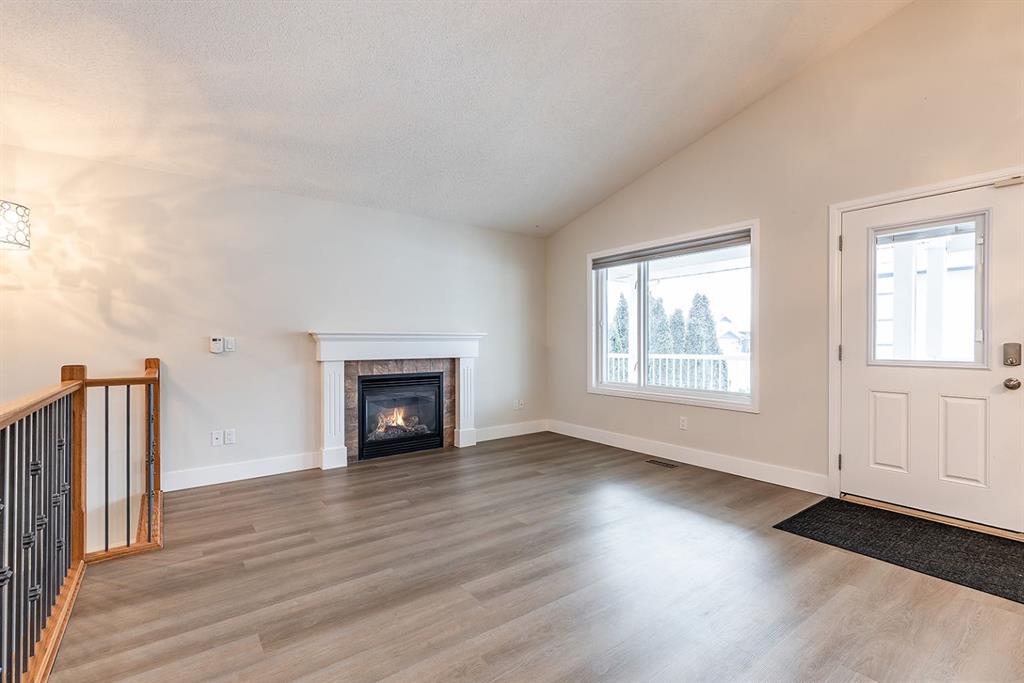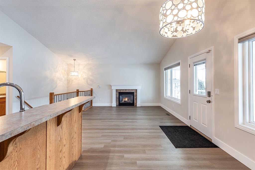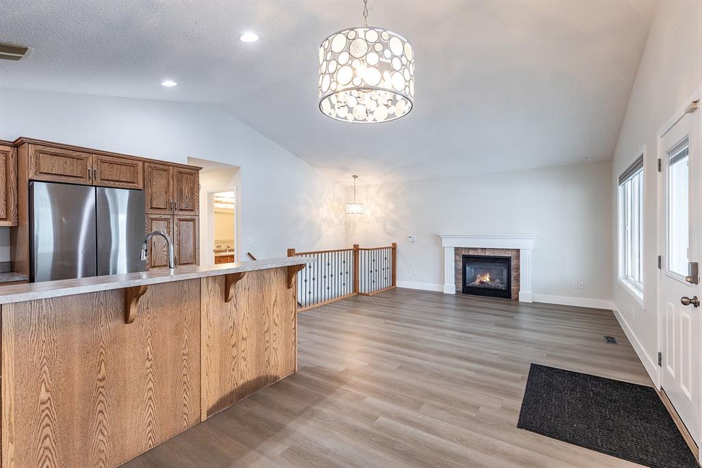 Welcome to this charming and cozy bungalow ideally located close to schools, shopping, parks, and scenic walking trails. The open-concept main floor is finished with stylish vinyl plank flooring throughout, creating a bright and cohesive living space perfect for everyday living and entertaining. The kitchen offers stainless steel appliances, ample cabinetry, and a convenient breakfast bar that opens seamlessly to the dining and living areas. A gas fireplace adds warmth and character, making the living room a comfortable retreat.