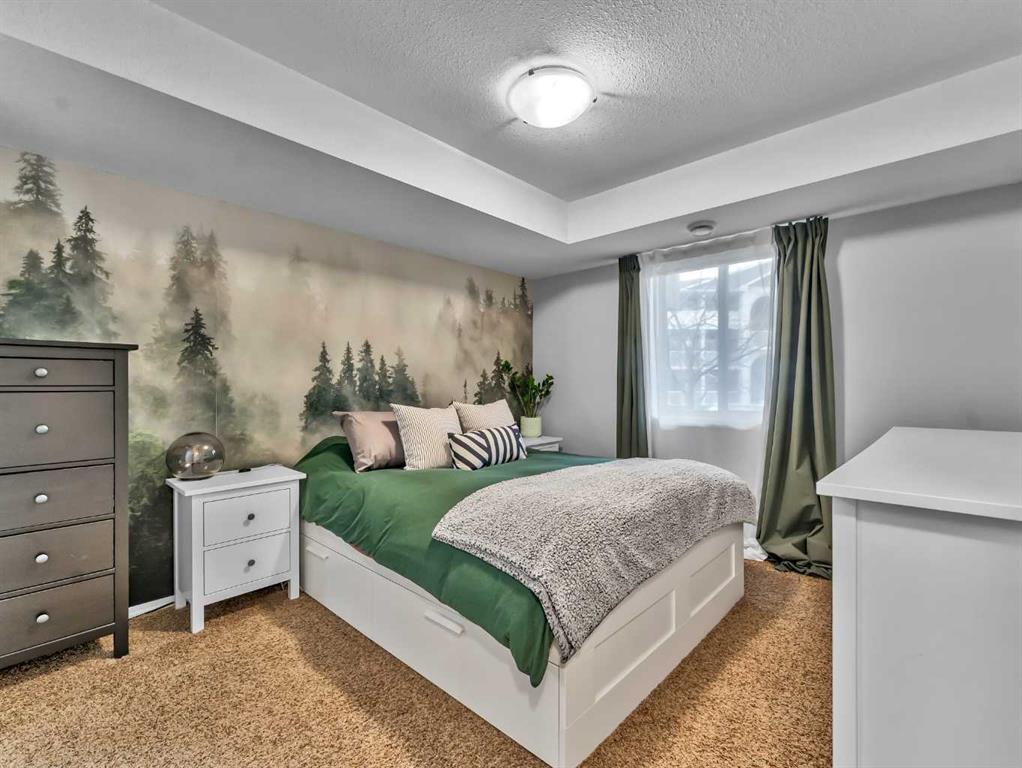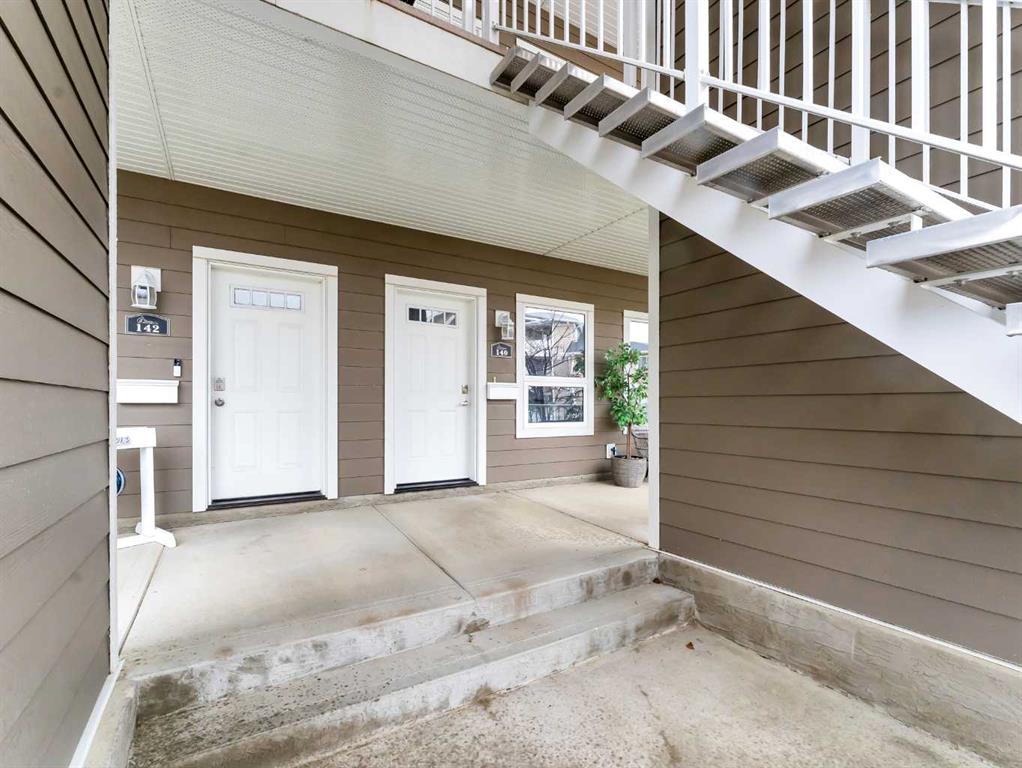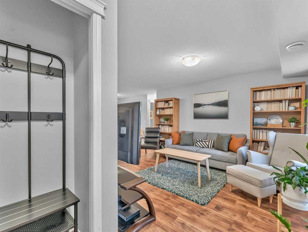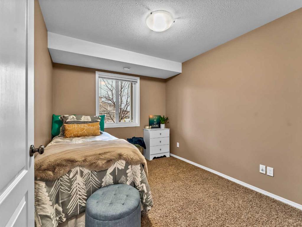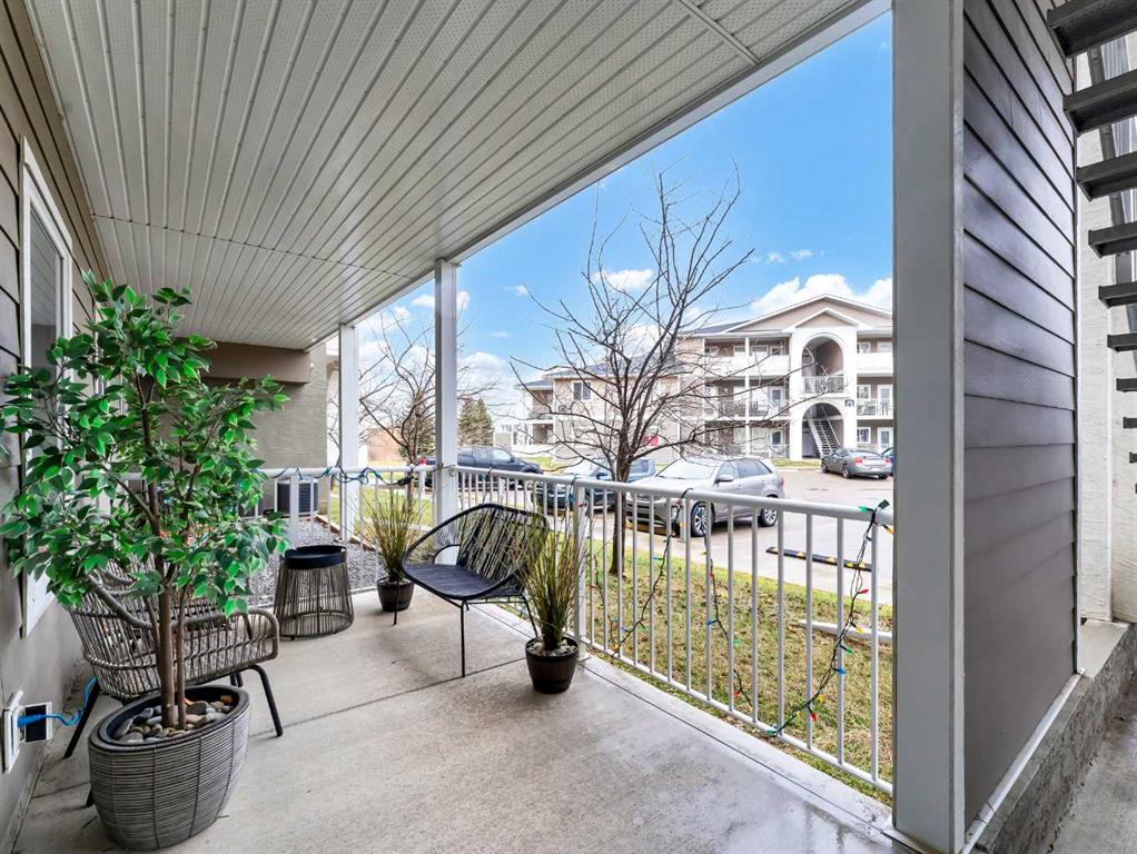 The spacious primary suite offers a comfortable retreat with a walk-in closet and a 4-piece ensuite. A second bedroom and an additional 4-piece bathroom provide flexibility for guests, family, or a home office. Enjoy the convenience of a covered entrance and front patio space, ideal for relaxing outdoors.