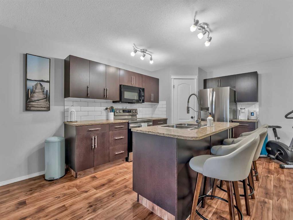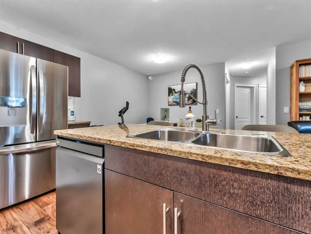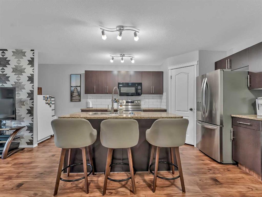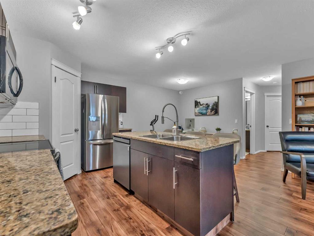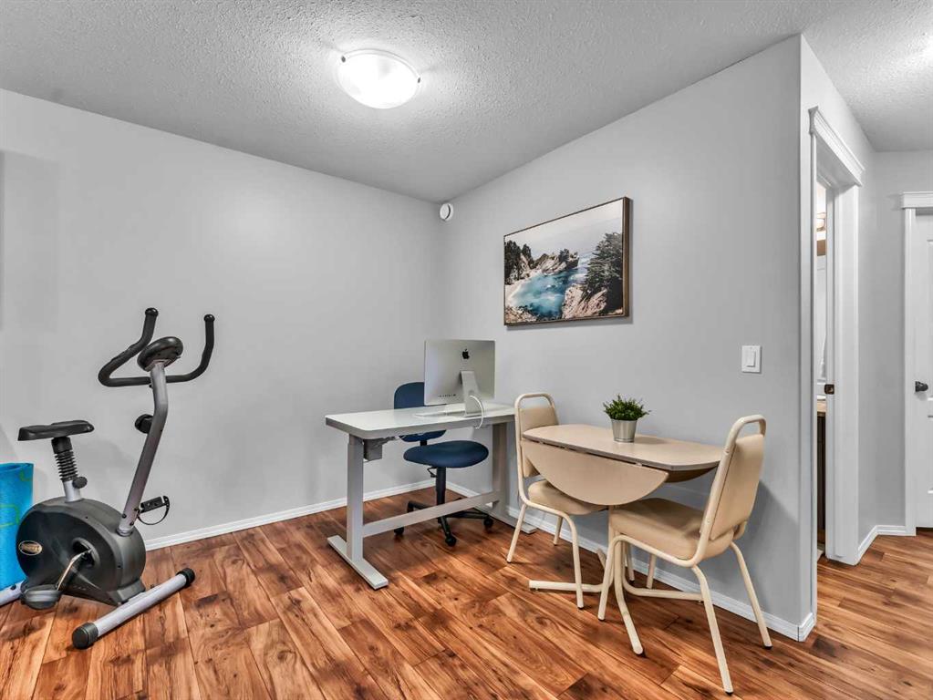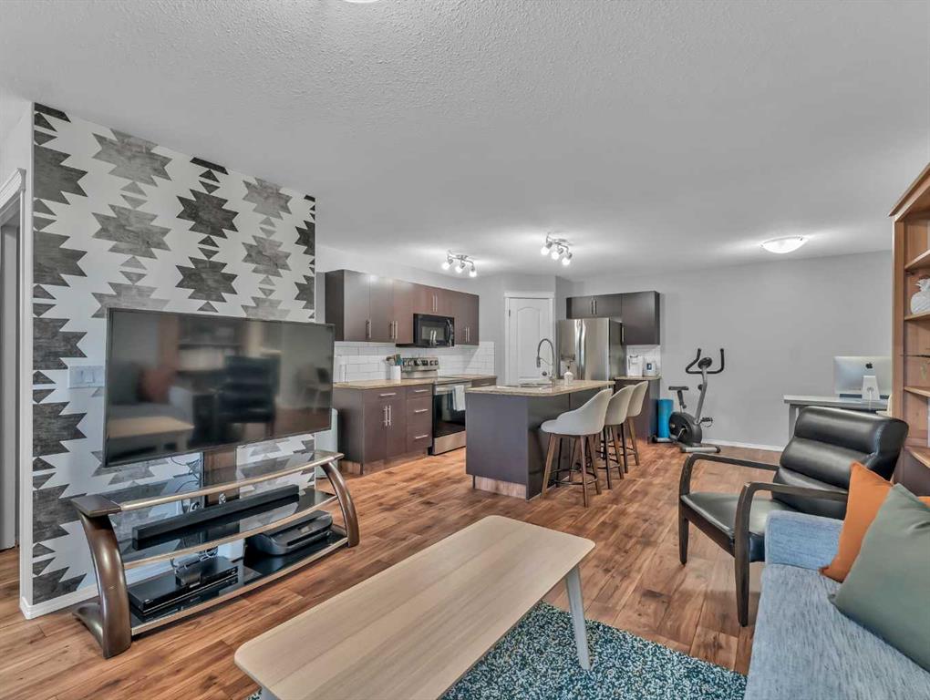 The spacious primary suite offers a comfortable retreat with a walk-in closet and a 4-piece ensuite. A second bedroom and an additional 4-piece bathroom provide flexibility for guests, family, or a home office. Enjoy the convenience of a covered entrance and front patio space, ideal for relaxing outdoors.