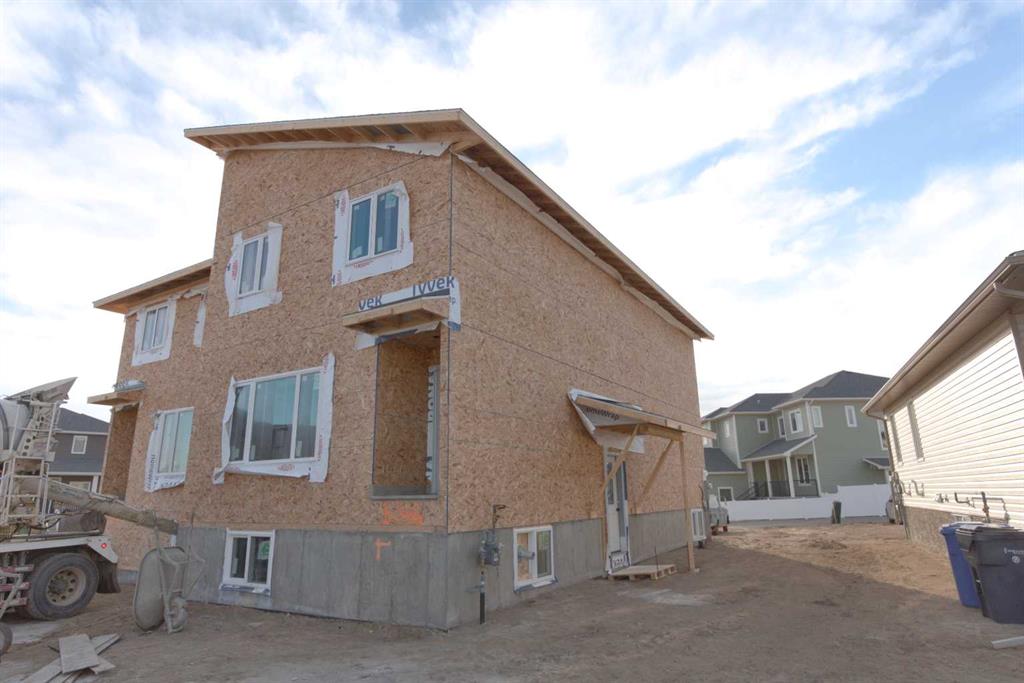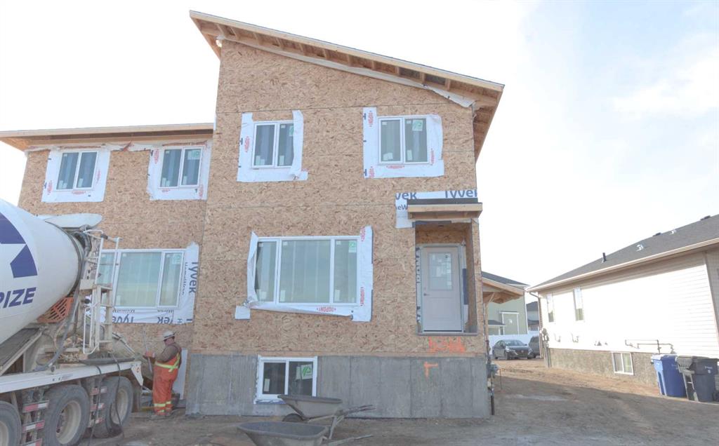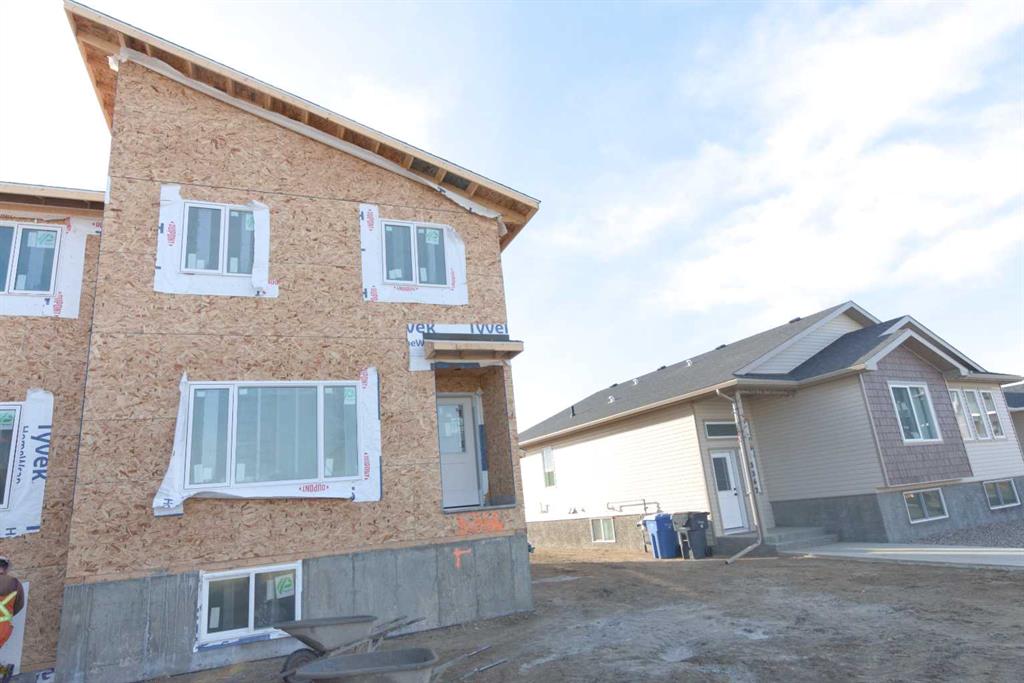 Welcome to this brand-new built half duplex 3+2 bedrooms, 3.5 bathrooms 1782sf home with a legal basement suite 2 bedrooms and 1 full bathroom. You will love and enjoy the thoughtful layout and quality home by New Tab Homes and DP76 Construction. This property offers you the brightness, modern design, smart functionality and a passive income from the suite. The main living space is intentionally designed to maximize the layout and accommodates lower suite bedrooms stay away from the mechanical rooms which is a such thoughtful design. The upper-level hosts 3 generously sized bedrooms, including a primary bedroom with a walk-in closet and a 4-piece ensuite, an additional 4-piece bathroom and a convenient laundry room. Step in the main floor is the bright living room, a half bathroom, a storage, a den, the kitchen and the dining room. The fully developed basement is a legal suite, offering a separated entrance, an excellent feature for extended family or a passive income. The suite features its own kitchen, a family room, two bedrooms, a 4-piece bathroom, and a separate laundry area. The estimated completion is end of March 2026. A great opportunity to own a brand new home 1 land of title for 2 units in Southlands of Medicine Hat.