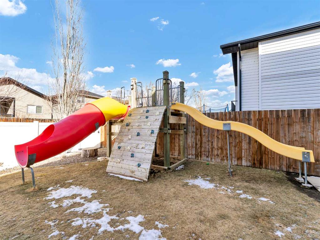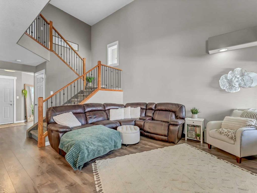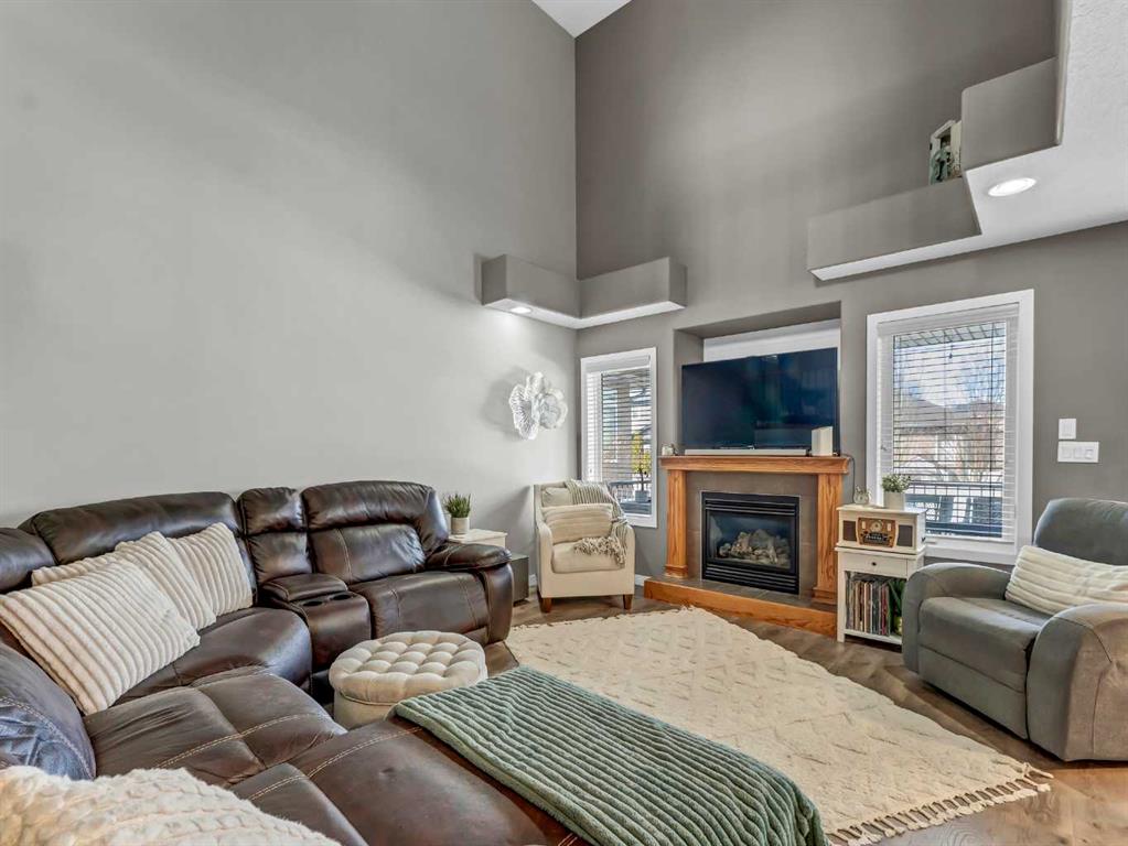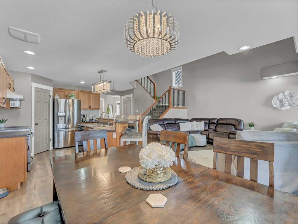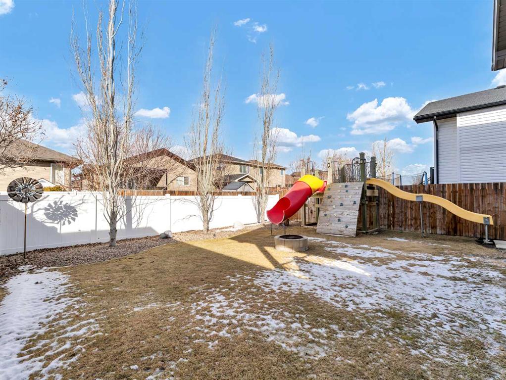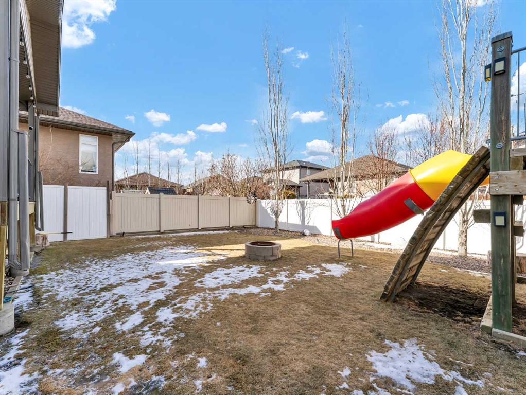 Welcome to this move-in ready 2-storey home offering a functional layout, great living space, and room to grow! Featuring newer flooring, newer appliances and a new roof (2024)! The main floor features an open-concept design with a spacious kitchen complete with oak cabinetry, newer stainless steel appliances, a corner pantry, and a large centre island with eat-at breakfast bar—perfect for family life and entertaining. The generous dining area easily accommodates a full-sized table and flows into the bright living room, where you’ll love the gas fireplace, soaring two-storey ceilings, and abundance of natural light. A convenient 2-piece bathroom, main floor laundry, and access to the double attached garage complete this level. Upstairs you’ll find three bedrooms, including a comfortable primary suite with a walk-in closet and a 4-piece ensuite featuring a soaker tub and separate shower, plus a full 4-piece main bathroom for the family. Step outside to enjoy the covered deck and fully fenced, landscaped backyard—ideal for relaxing or hosting summer BBQs. The unfinished lower level offers endless potential for future development to suit your needs. A fantastic opportunity to own a well-maintained family home in a great location—just move in and enjoy!