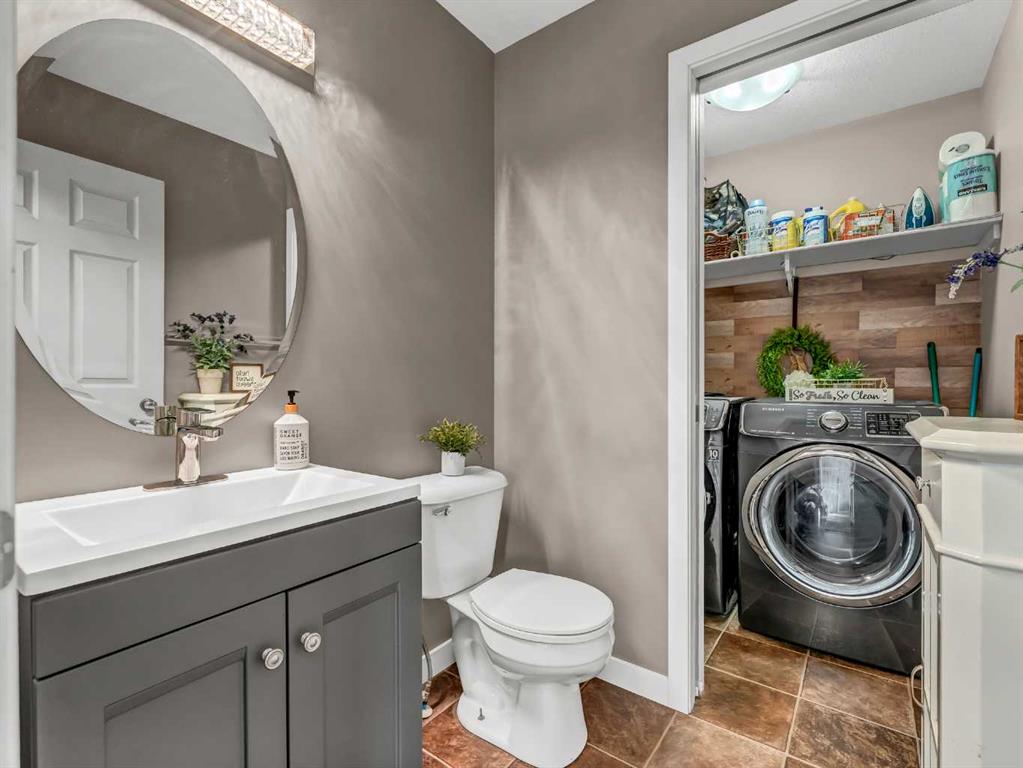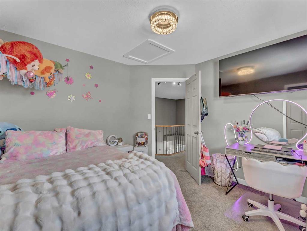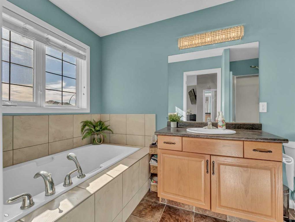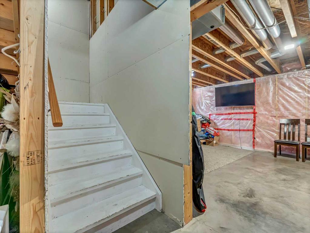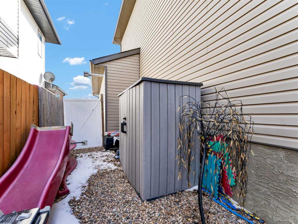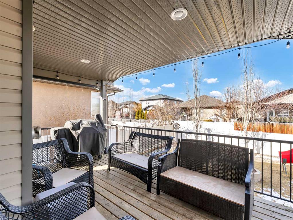 Welcome to this move-in ready 2-storey home offering a functional layout, great living space, and room to grow! Featuring newer flooring, newer appliances and a new roof (2024)! The main floor features an open-concept design with a spacious kitchen complete with oak cabinetry, newer stainless steel appliances, a corner pantry, and a large centre island with eat-at breakfast bar—perfect for family life and entertaining. The generous dining area easily accommodates a full-sized table and flows into the bright living room, where you’ll love the gas fireplace, soaring two-storey ceilings, and abundance of natural light. A convenient 2-piece bathroom, main floor laundry, and access to the double attached garage complete this level. Upstairs you’ll find three bedrooms, including a comfortable primary suite with a walk-in closet and a 4-piece ensuite featuring a soaker tub and separate shower, plus a full 4-piece main bathroom for the family. Step outside to enjoy the covered deck and fully fenced, landscaped backyard—ideal for relaxing or hosting summer BBQs. The unfinished lower level offers endless potential for future development to suit your needs. A fantastic opportunity to own a well-maintained family home in a great location—just move in and enjoy!
