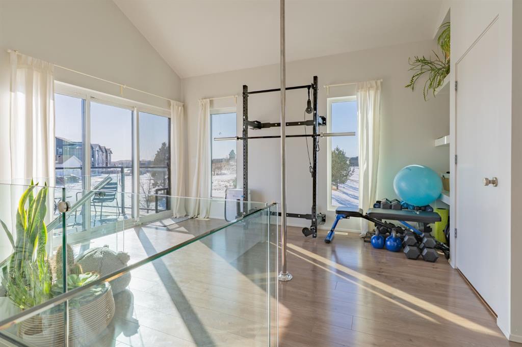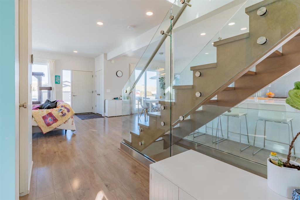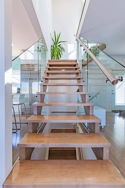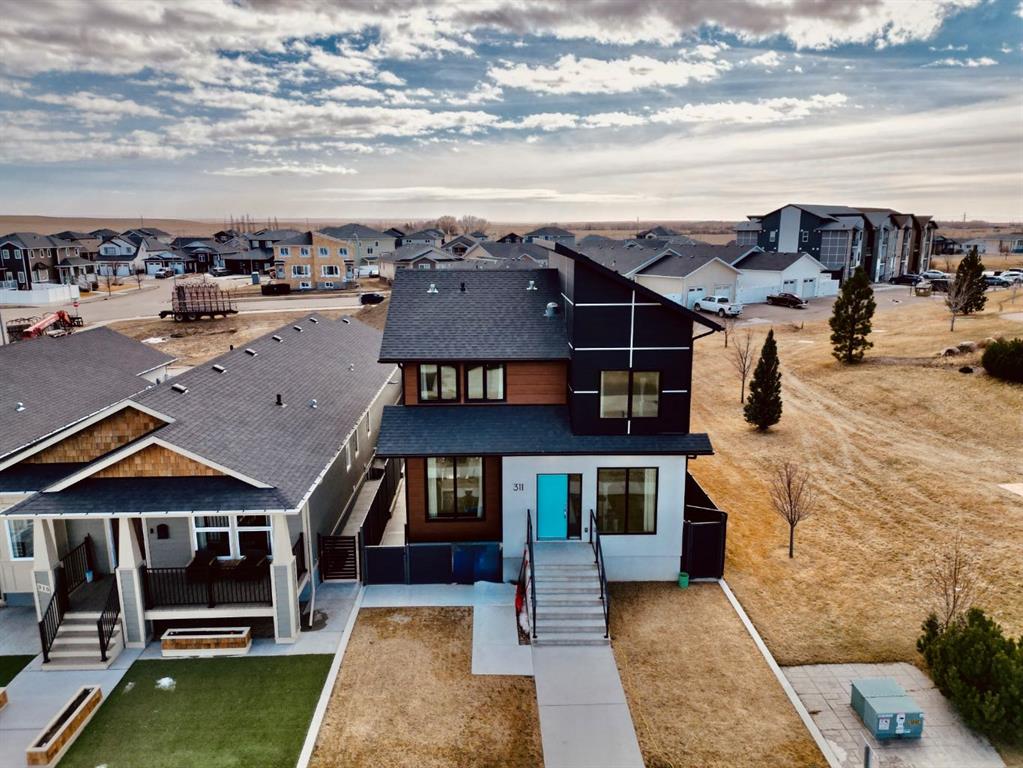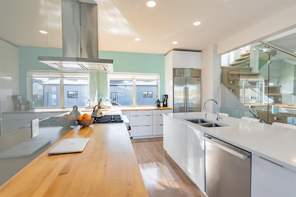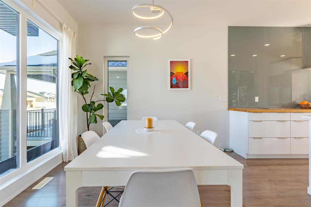 Unique. Modern. One-of-a-kind. Welcome to this stunning 1,668 sqft custom high efficient two-storey by Brost Developments, perfectly positioned beside Southlands Drive Park, offering green space views and no neighbours on one side. From the moment you arrive, the curb appeal makes a statement. Strong architectural lines, cement fibre board panels, and specialty stucco create a bold modern exterior, accented by a fun pop of colour at the front door. Inside, the clean white walls and ceilings set the stage for the home’s striking design. The living room is anchored by a show-stopping gas fireplace with windows on either side framing park views. A true focal point at the entry is the incredible open-riser staircase with glass railing. The open-concept main floor flows seamlessly into the dining area and a chef-inspired kitchen featuring a Sub-Zero fridge, Wolf range, quartz countertops, and a large island with seating. A stylish 2 pc powder room and functional mudroom with built-ins and backyard access complete the space. Upstairs, versatility shines. The current gym space, filled with natural light and offering access to a spacious balcony, could easily serve as a loft, family room, office, or studio. The primary suite is spacious and refined, complete with a beautiful ensuite and a walk-in closet with custom built-in shelving and drawers. An additional bedroom upstairs features its own thoughtfully designed custom built-in wardrobe system. The fully developed basement expands your living space with a large recreation room with built-ins, two additional bedrooms (one currently used as an office), and a full bathroom. One of the most unique features of this property is the detached garage with a 158 sqft professional kitchen. Heated, ventilated, and equipped with A/C, this flexible space would make an incredible studio, office, creative workspace, or a home business venture. Built with long-term efficiency at the forefront, this home is equipped with a 26 kW 10-panel solar system, blending modern design with smart, sustainable living. Located in a highly sought-after family-friendly area, directly beside a beautiful park and close to schools, walking paths, and Southside amenities, this home is truly something special. A rare blend of architectural design, high-end finishings, and functional versatility.