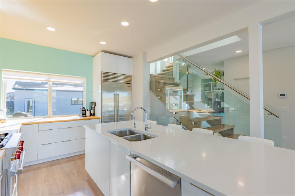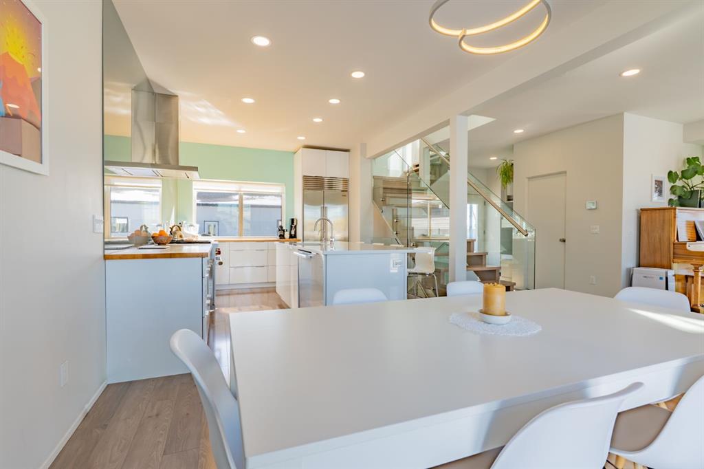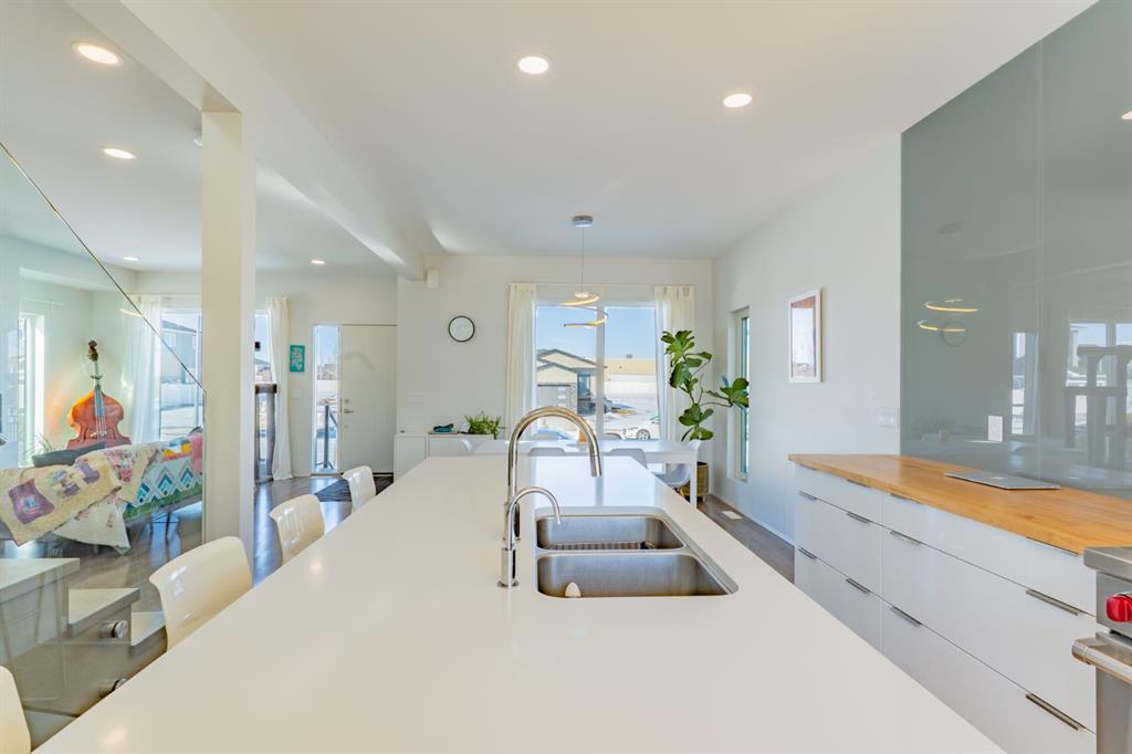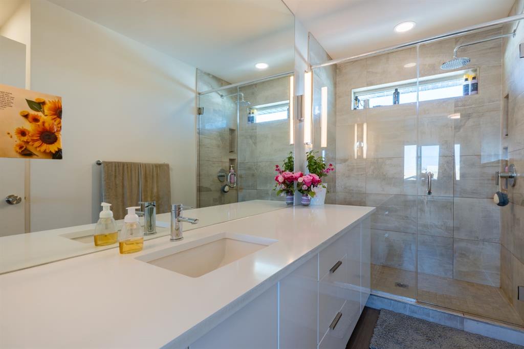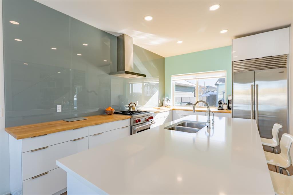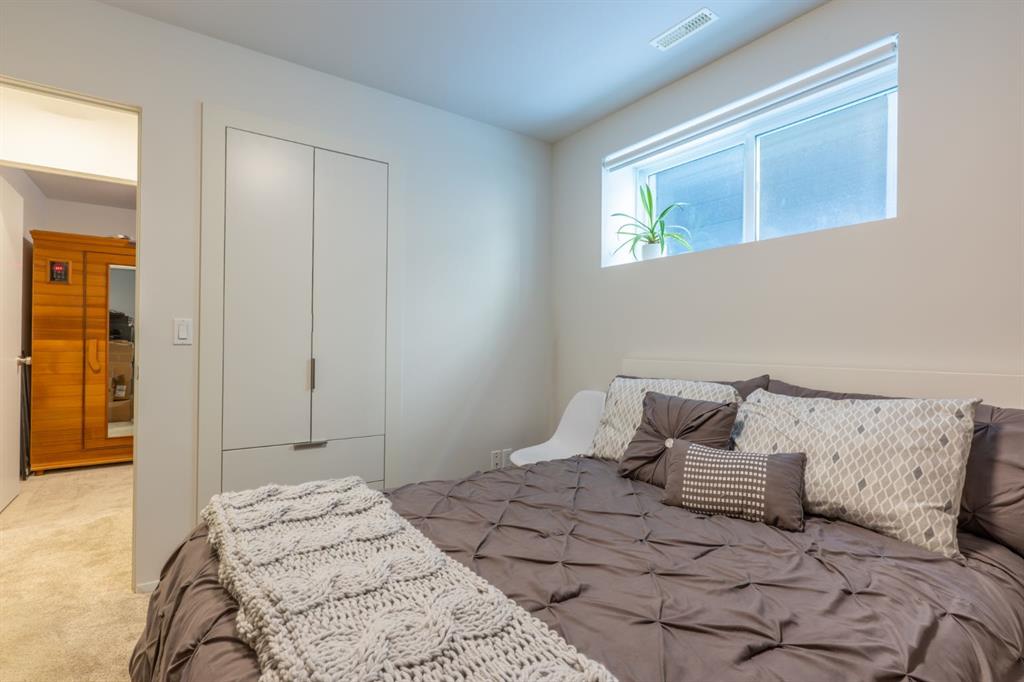 Unique. Modern. One-of-a-kind. Welcome to this stunning 1,668 sqft custom high efficient two-storey by Brost Developments, perfectly positioned beside Southlands Drive Park, offering green space views and no neighbours on one side. From the moment you arrive, the curb appeal makes a statement. Strong architectural lines, cement fibre board panels, and specialty stucco create a bold modern exterior, accented by a fun pop of colour at the front door. Inside, the clean white walls and ceilings set the stage for the home’s striking design. The living room is anchored by a show-stopping gas fireplace with windows on either side framing park views. A true focal point at the entry is the incredible open-riser staircase with glass railing. The open-concept main floor flows seamlessly into the dining area and a chef-inspired kitchen featuring a Sub-Zero fridge, Wolf range, quartz countertops, and a large island with seating. A stylish 2 pc powder room and functional mudroom with built-ins and backyard access complete the space. Upstairs, versatility shines. The current gym space, filled with natural light and offering access to a spacious balcony, could easily serve as a loft, family room, office, or studio. The primary suite is spacious and refined, complete with a beautiful ensuite and a walk-in closet with custom built-in shelving and drawers. An additional bedroom upstairs features its own thoughtfully designed custom built-in wardrobe system. The fully developed basement expands your living space with a large recreation room with built-ins, two additional bedrooms (one currently used as an office), and a full bathroom. One of the most unique features of this property is the detached garage with a 158 sqft professional kitchen. Heated, ventilated, and equipped with A/C, this flexible space would make an incredible studio, office, creative workspace, or a home business venture. Built with long-term efficiency at the forefront, this home is equipped with a 26 kW 10-panel solar system, blending modern design with smart, sustainable living. Located in a highly sought-after family-friendly area, directly beside a beautiful park and close to schools, walking paths, and Southside amenities, this home is truly something special. A rare blend of architectural design, high-end finishings, and functional versatility.