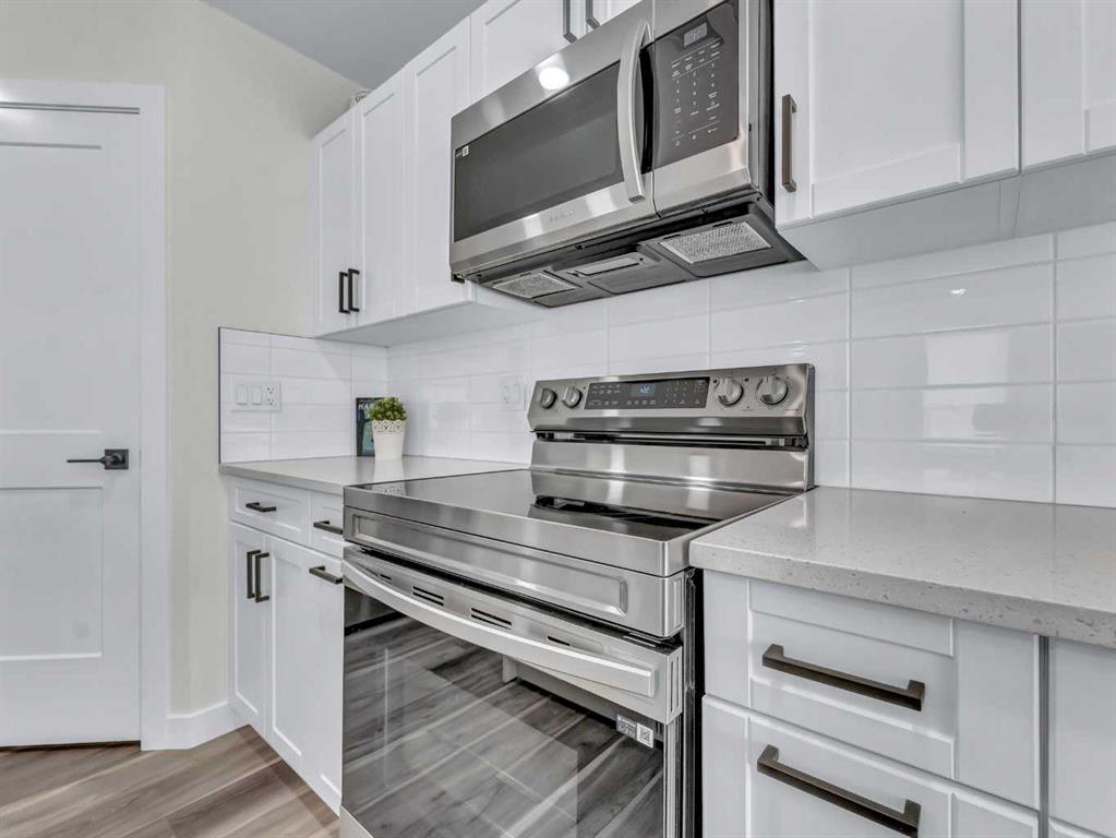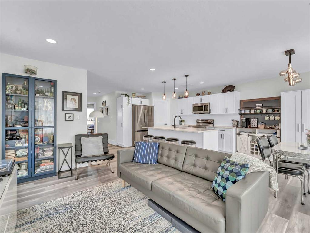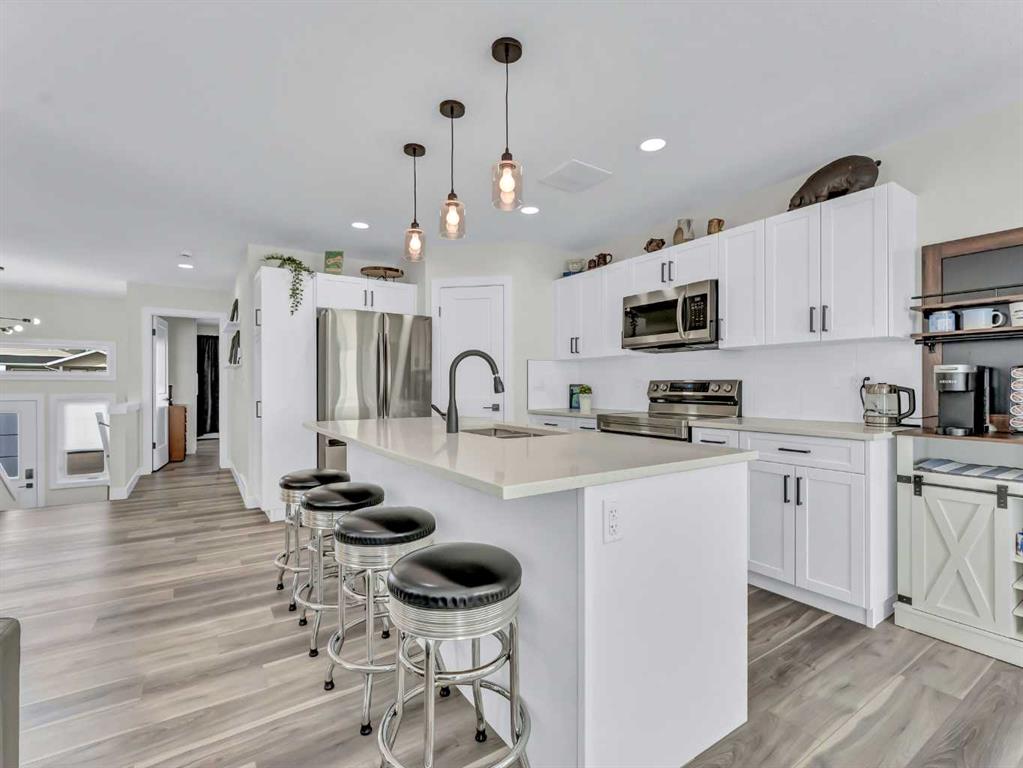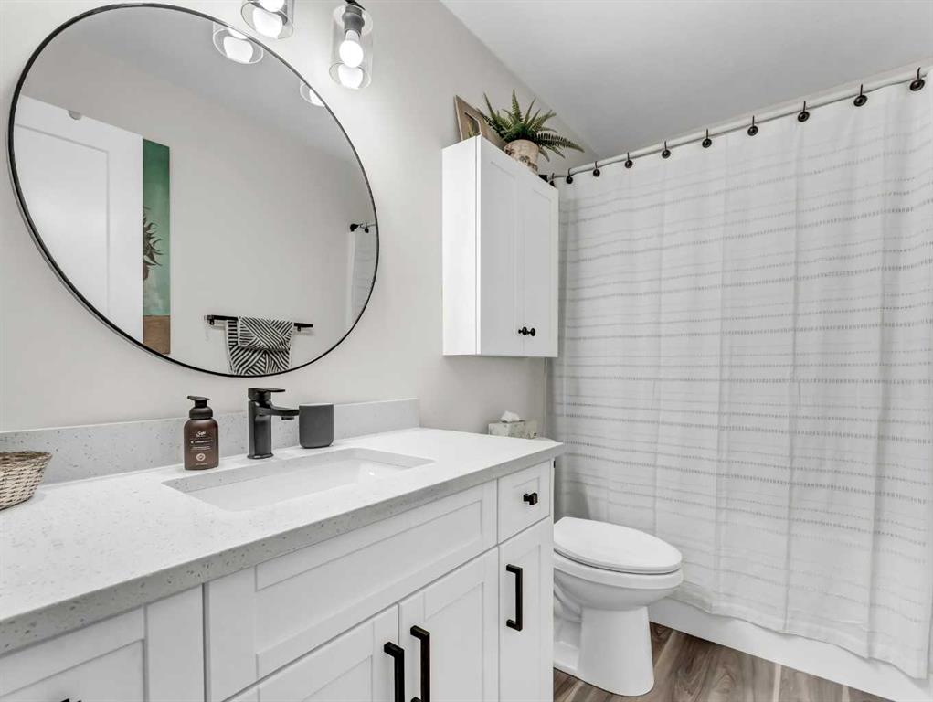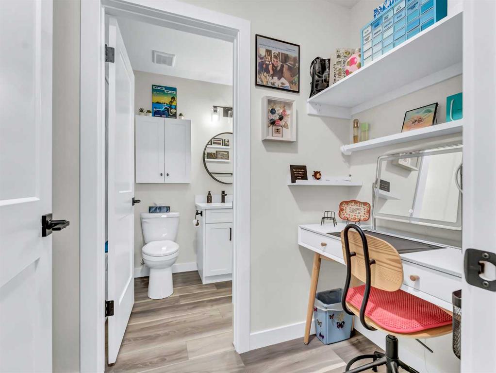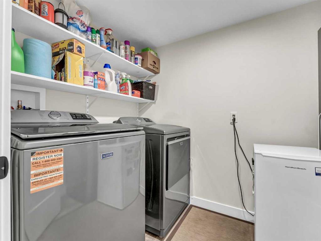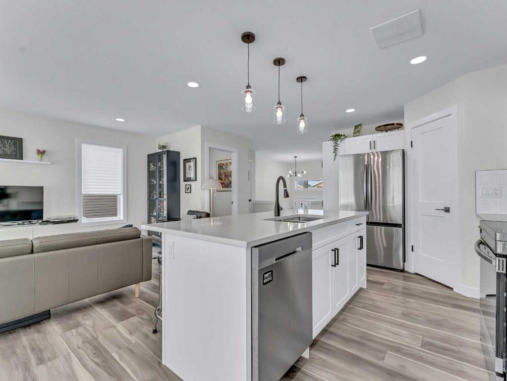 The main floor features a spacious open-concept layout, perfect for everyday living and entertaining. The stunning kitchen is a standout, showcasing quartz countertops, a corner pantry, and upgraded cabinetry complete with pull-out shelves, and many convenient custom finishing touches and thoughtful storage solutions. The kitchen flows seamlessly into the dining and living areas, with direct access to a private deck and cozy backyard. Main floor offers a convenient 2-piece bathroom for guests and a generous primary bedroom retreat, complete with a walk-in closet, full 4-piece ensuite, and a stylish, very convenient wardrobe that can be included.