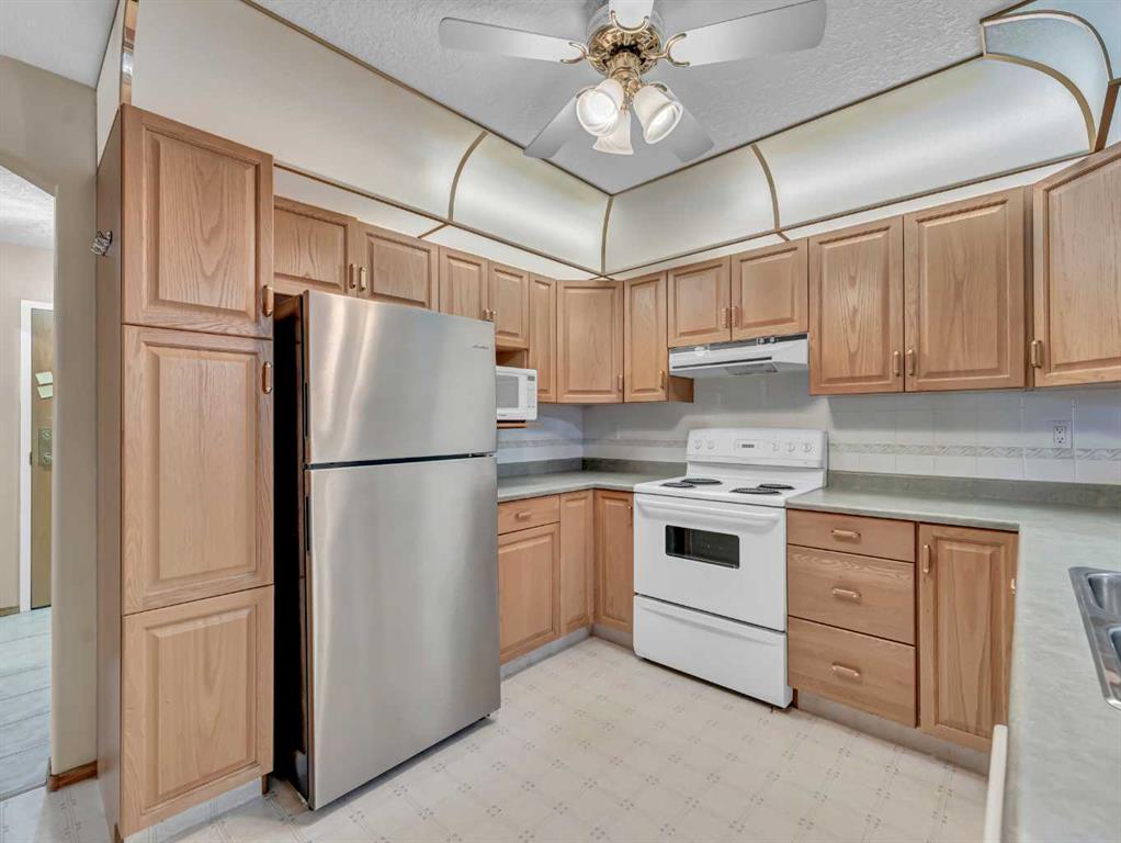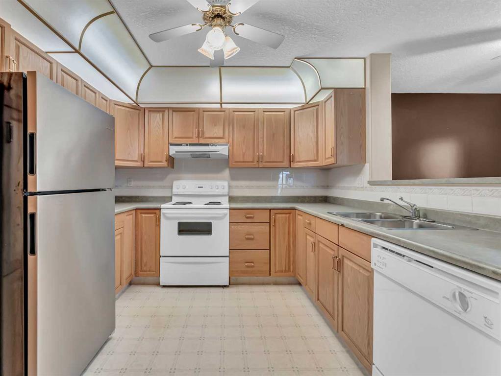 Enjoy comfortable, adult-oriented living in this well-maintained 2-bedroom, 2-bathroom condo located in a desirable age-restricted community. The bright, functional layout offers a spacious living and dining area, a well-equipped kitchen with ample cabinetry, and large windows that fill the home with natural light. The primary bedroom features a full ensuite, while the second bedroom is ideal for guests or a home office. A second full bathroom, in-suite laundry, and an underground heated parking stall add everyday convenience.