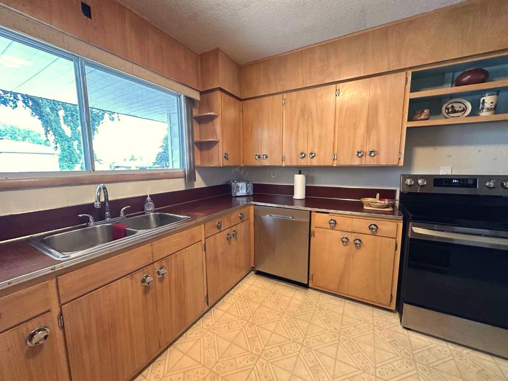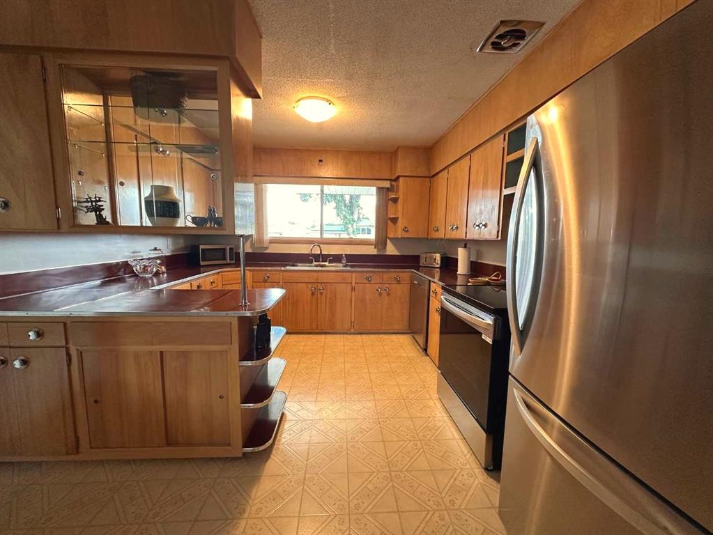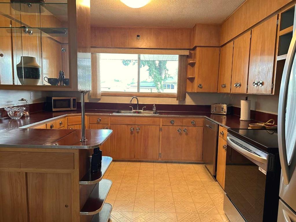 Spacious 4 bedroom raised bungalow conveniently located on a quiet SW Hill street near the hospital. Good quality, high wind resistant SHINGLES INSTALLED ABOUT 6 YEARS AGO. The THE ELECTRICAL SERVICE WAS JUST UPGRADED 2025 TO 100 AMP and main floor plugins updated at the same time (est. approx. $7,500 Quickway Electrical). LARGE 65 X 125 LOT with RV PARKING and lots of OFF STREET PARKING if needed. HARDWOOD FLOORS under carpet in hallway and 3 main floor front bedrooms. NEW CARPETS INSTALLED 2025 in hallway and bedrooms, This home is in VERY CLEAN CONDITION with original woodwork and cabinets also in really good condition. The LARGE COUNTRY KITCHEN has solid oak cabinets in really nice condition as well as COMPLETE NEW STAINLESS STEEL APPLIANCE PACKAGE 2025. NEW AIR CONDITIONING also installed 2025 along with NEW R50 INSULATION ADDED TO ATTIC as well as 4 large old trees removed for safety purposes and all in 2025.. Cozy and bright front living room. The exterior is vinyl and brick with all windows metal clad. Basement windows are also large and therefore letting in lots of light (this is the benefit of a raised bungalow). There could easily be a studio suite (when renovated) in the bright basement with its own private entrance and this may be convenient for a family member or as additional income potential. This home enjoys "good vibes" and should be well received in todays market. Reportedly around $45,000 was invested into this property within 2025. Basement suite needs renovations but has really meaningful potential.