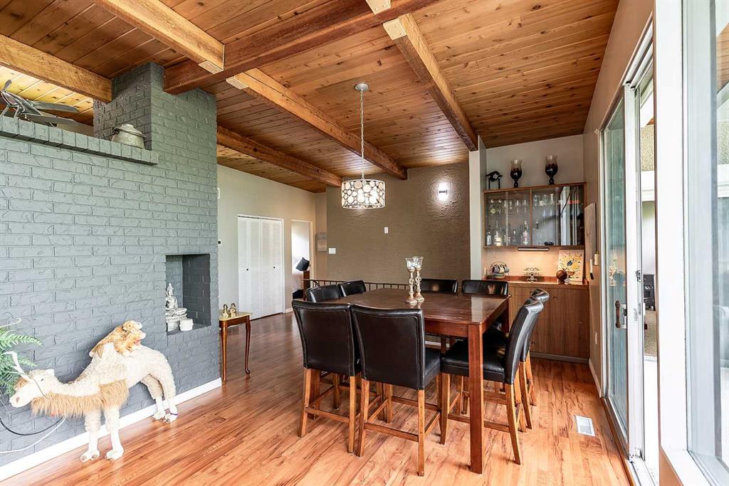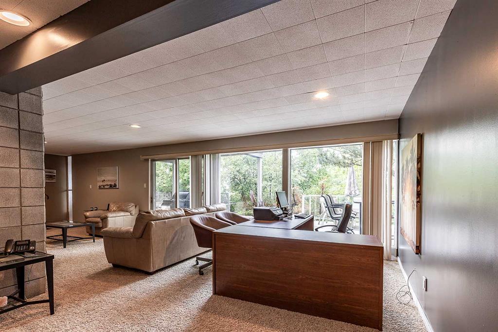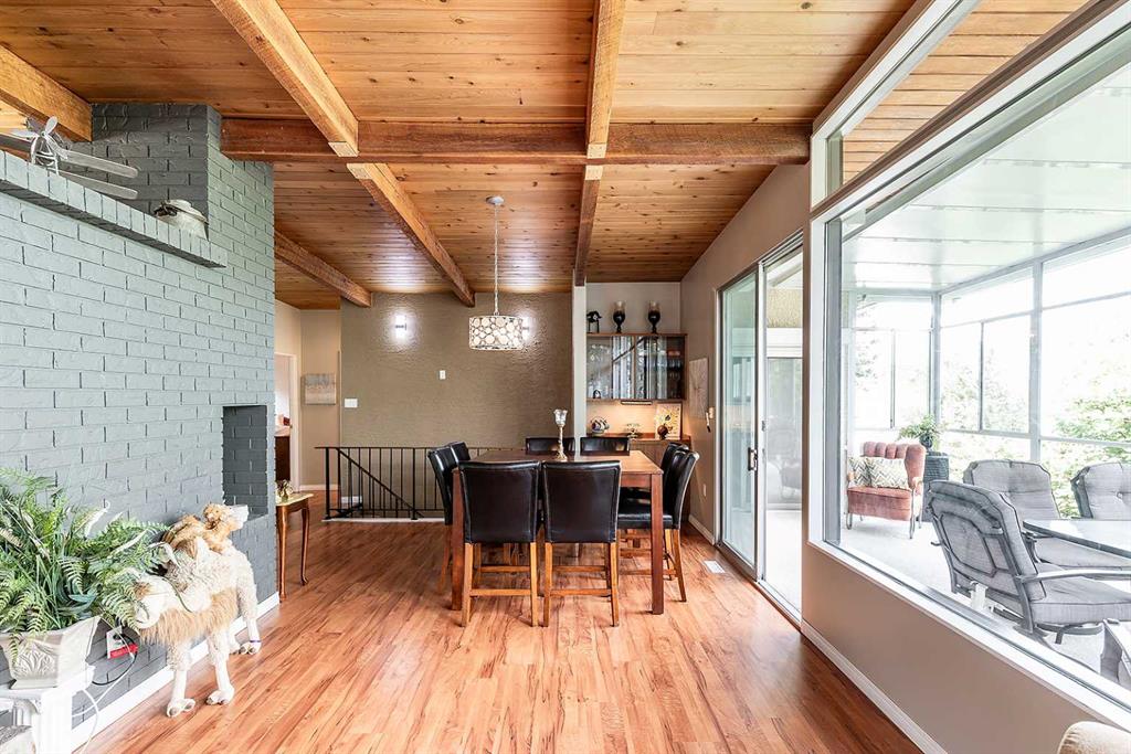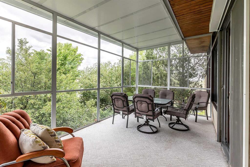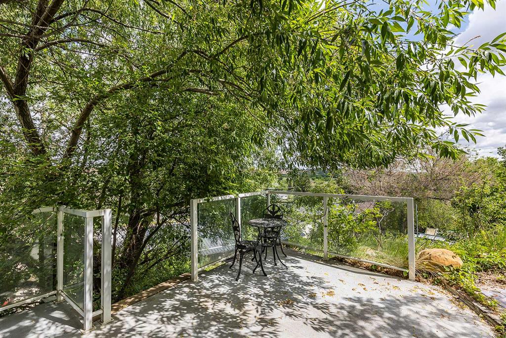 Discover this architecturally designed, one-of-a-kind walkout hillside bungalow, ideally located near the hospital and tucked into an extremely private, tree-covered setting. Perfectly positioned to frame stunning views of the river valley, this home offers exceptional character and a peaceful connection to nature. The main floor features striking open-beamed, sloped ceilings and a beautiful double masonry fireplace, creating a warm and inviting atmosphere. The open-concept layout flows into an oak kitchen with a built-in oven—designed for both function and charm. Just off the main living area, a gorgeous sunroom sits among the trees, offering the perfect place to unwind, entertain, or simply enjoy the view in every season. With 3 bedrooms and 2 bathrooms, this home also includes a developed walkout basement, offering potential for an additional bedroom or flexible living space. Outside, a two-tiered backyard and partially covered patio make the most of the natural surroundings. Additional highlights include a single attached garage and extra parking on the front pad. Ready for you to make your own, this truly unique property blends architectural interest, incredible views, and a serene, private setting—an exceptionally rare find in Medicine Hat’s sought-after southwest hills.
