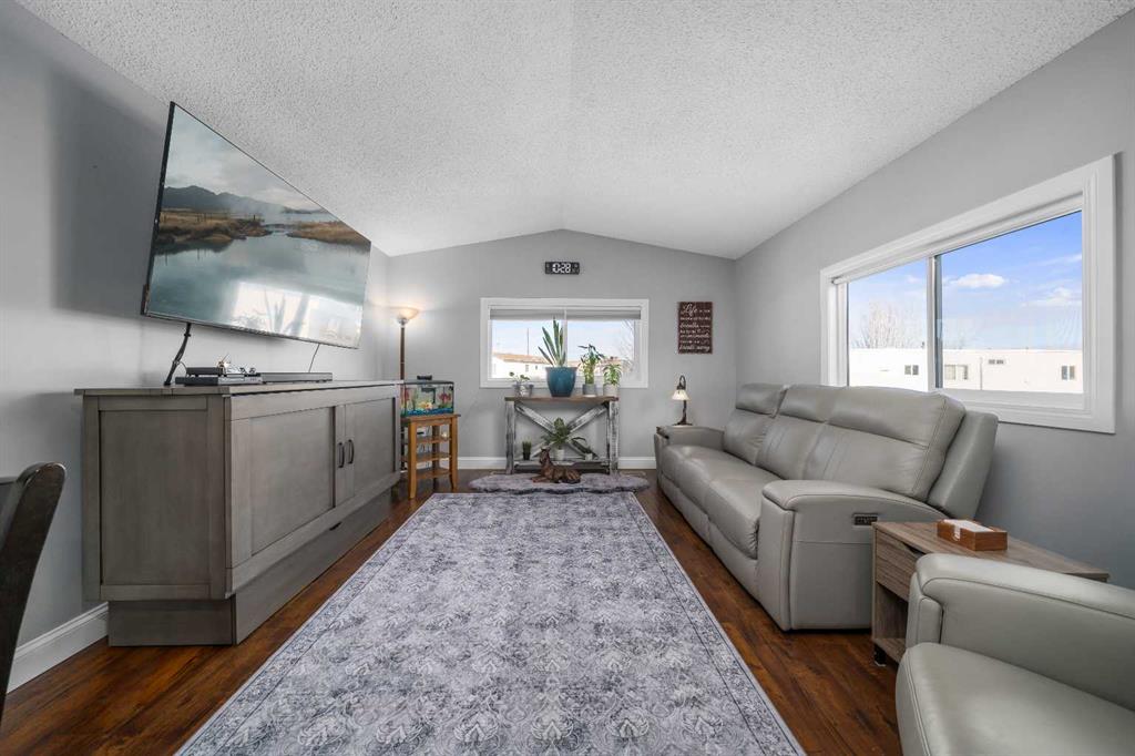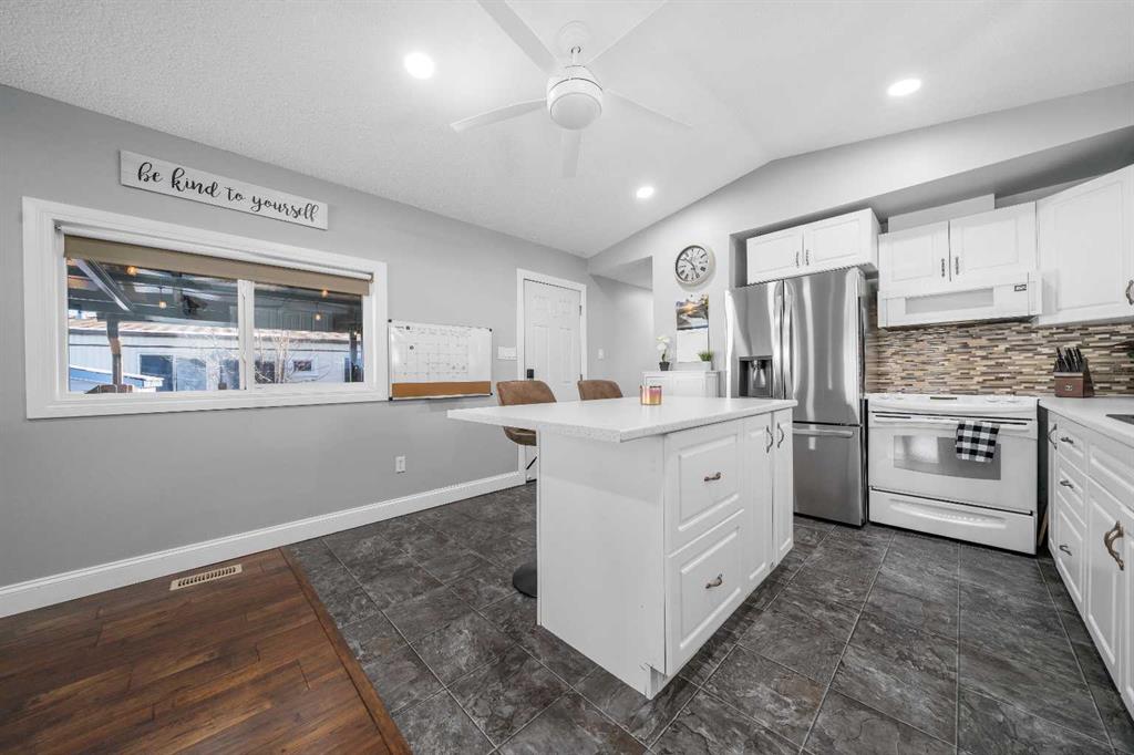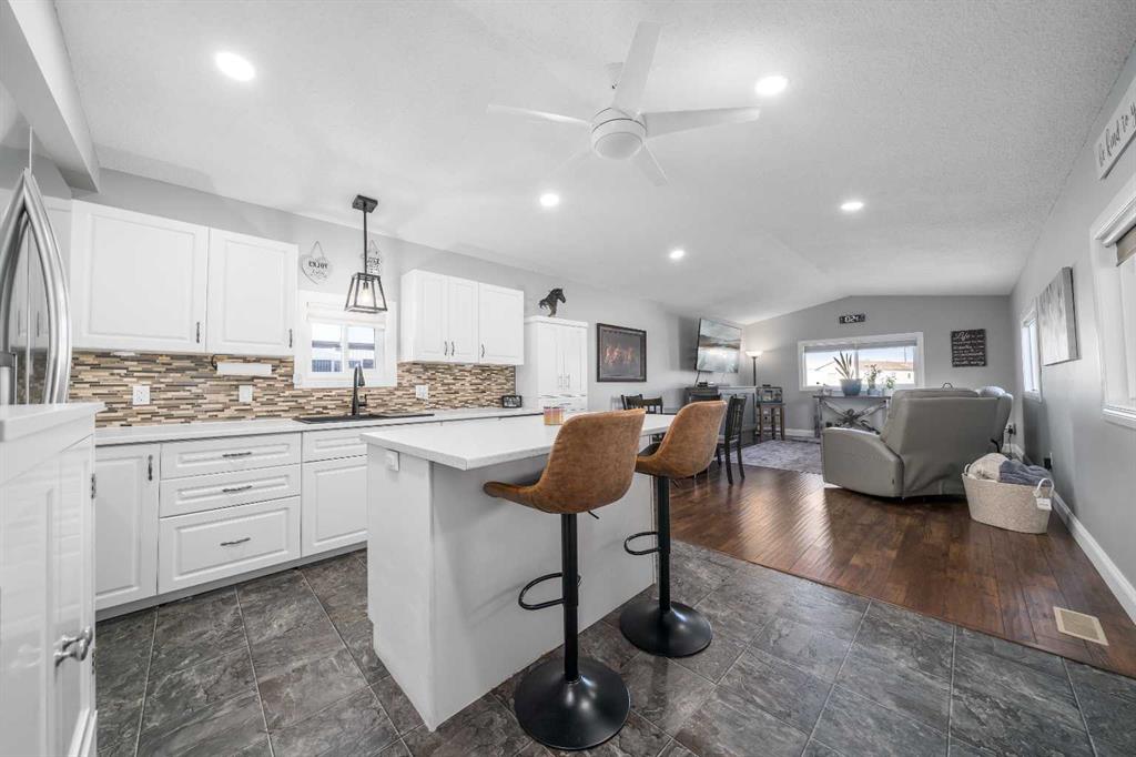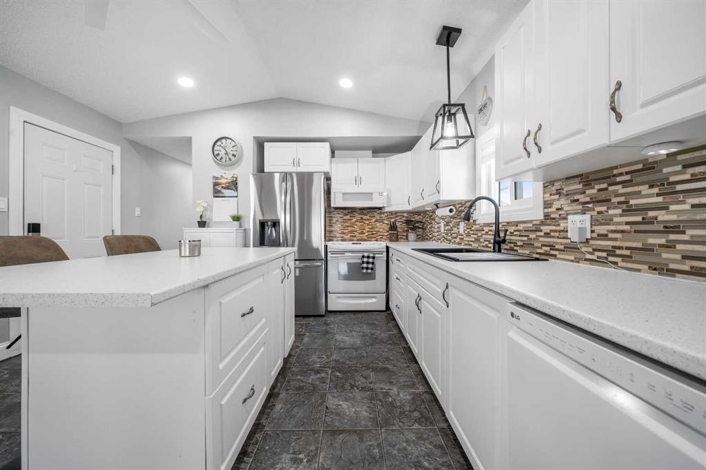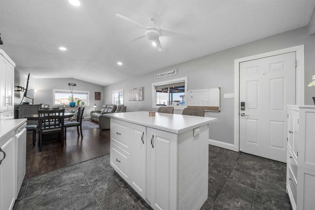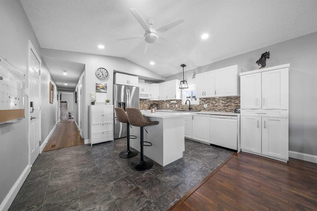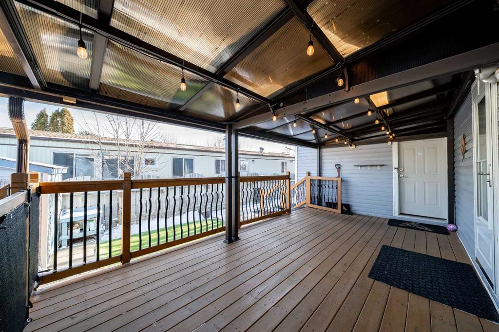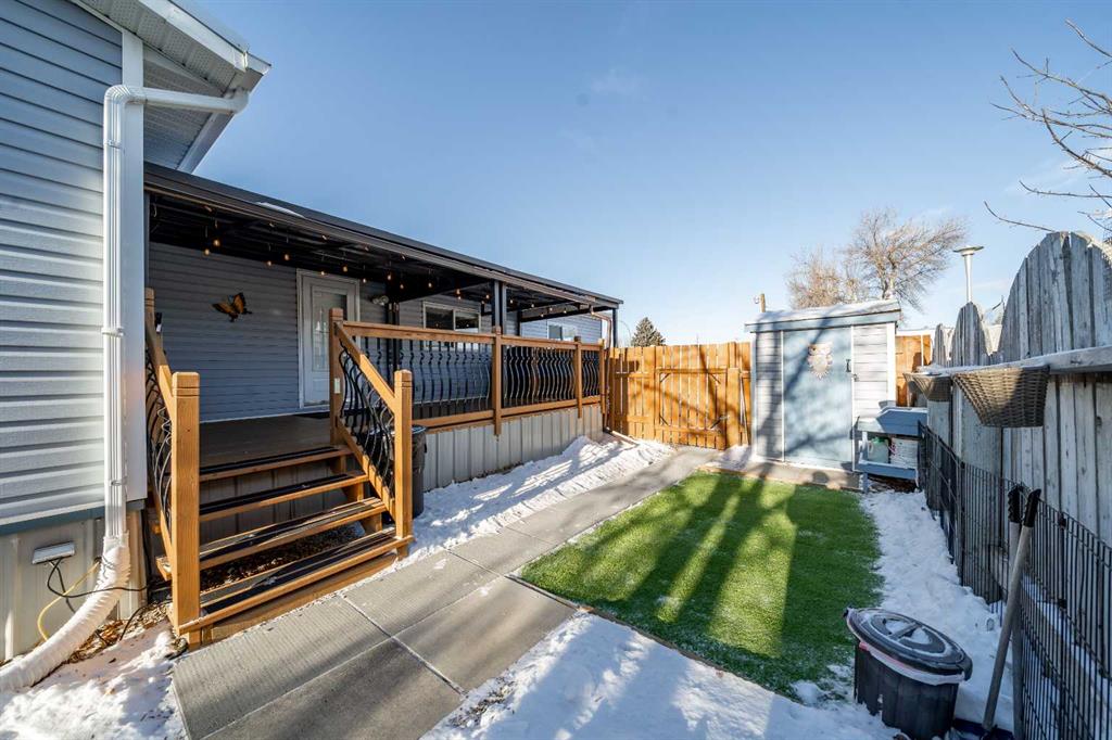 Want low maintenance living with everything on one level...with no fees, owned land and fully fenced yard for your pets or kids? Welcome to this 3 bed 2 bath home that has been meticulously maintained inside and out. The large covered deck (19'5"x 10'5") is welcoming and a great addition to morning coffees, entertaining friends and family in the warmer months, all while being protected from the elements. It's an extension of the home! Step inside to find a beautiful open concept kitchen/dining/living room with vaulted ceilings and newly incorporated pot lights to add to the abundance of natural light. The kitchen has new countertops, new sink and new side by side fridge. Enjoy simple meals at the counter seated island which also supplies numerous storage drawers/cupboards. Down the hall, away from the noise of living, you will find a four pc bath with laundry, a generous master bedroom with 3pc ensuite and two additional bedrooms..one currently used as an office with outdoor access. No detail has been missed, inside or outside...the list is endless. A new furnace installed in July 2025, with a pump so it doesn't drain under the home (affecting moisture below), new light fixtures/fans...washer ,dryer and dishwasher approximately 2 years old, new flooring in master bedroom. The office has been freshly painted in the last few days. Moving outside, the covered deck was stained this past summer and the gazebo has sliding panels to control level of sun etc. The yard has been completely transformed into a maintenance free zone including pea gravel and artificial grass. New sidewalks and rubber pads were installed to keep walking easy as well as a new garbage platform. There are 3 sheds and two container holding racks for added storage and convenience. Finally, the home was relevelled with new footings, cement pads and new 8ml poly/pea gravel installed below for optimal comfort and security. Don't miss the opportunity to check out this great home! Open House Sat, Jan 24/26 from 1:30-3:00 pm.